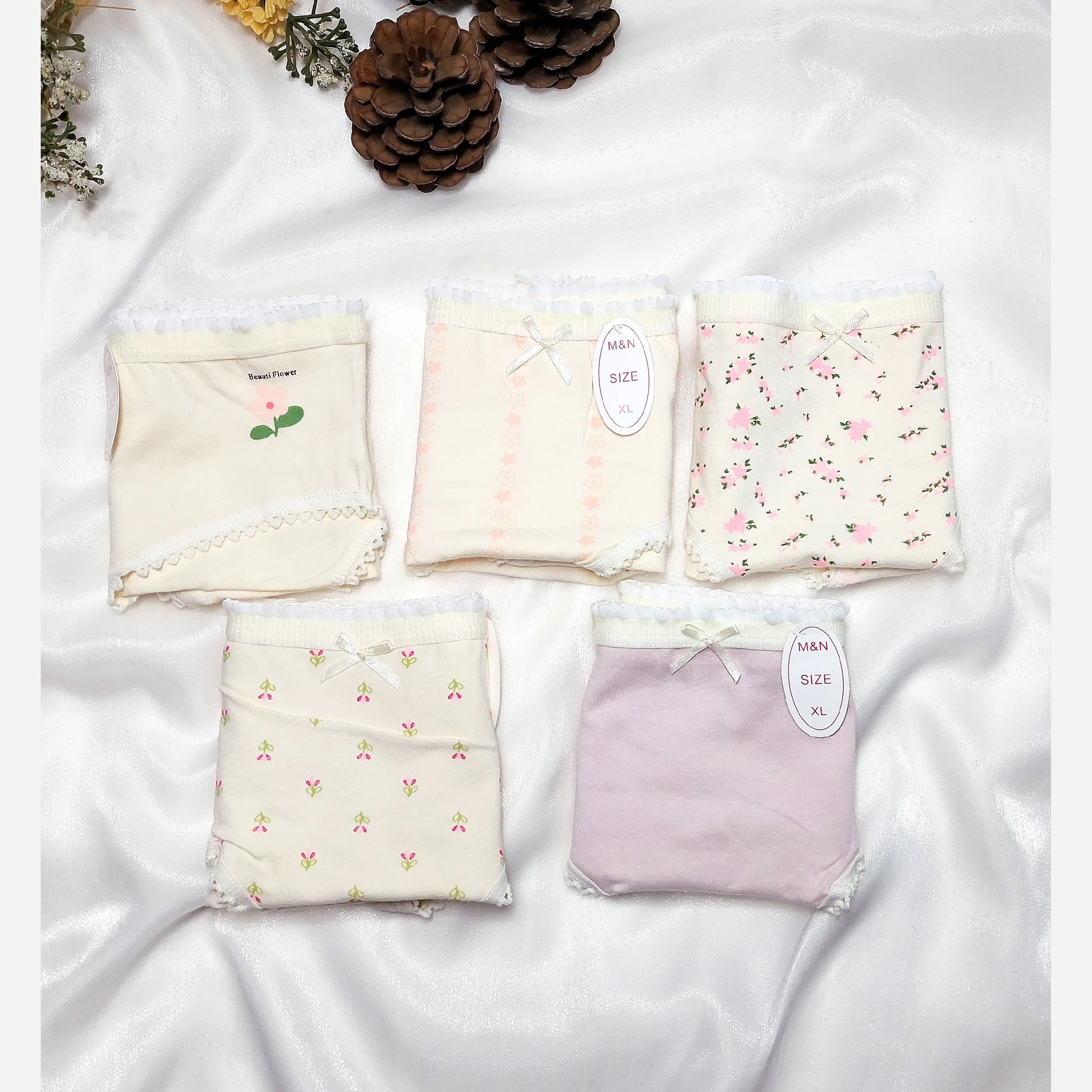 پک 5 عددی شورت زنانه تمام نخ عروسکی فانتزی طرح گل گلی راحت سایز بزرگ