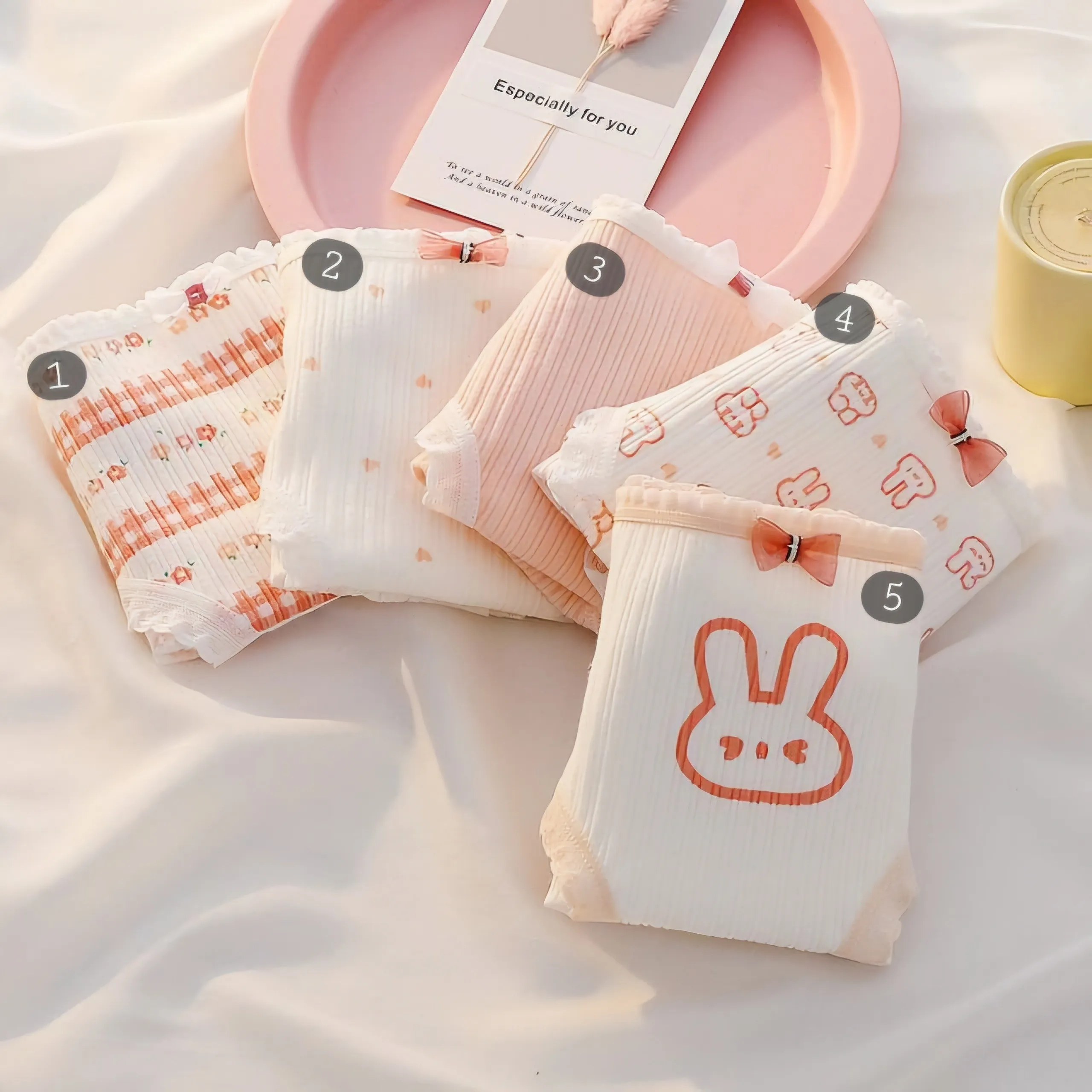 شورت زنانه عروسکی کبریتی تمام نخ پک پنجتایی طرح خرگوش و قلب راحت و خنک