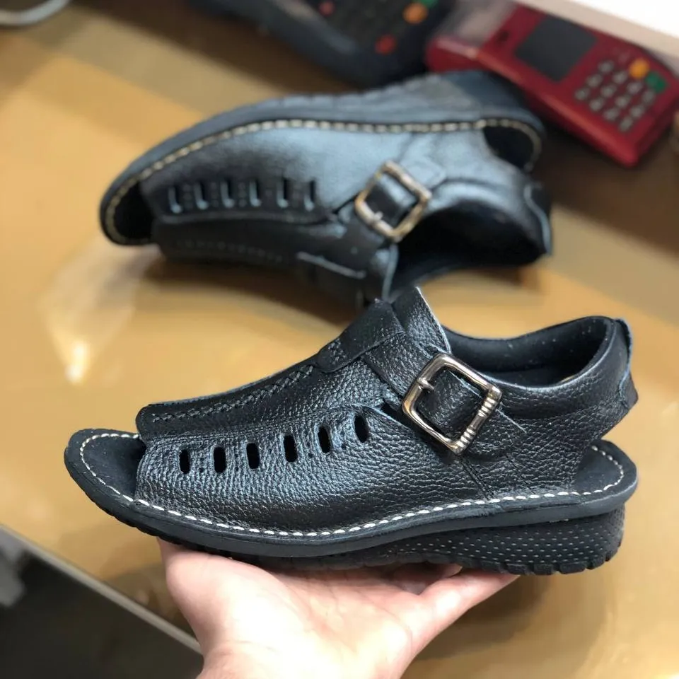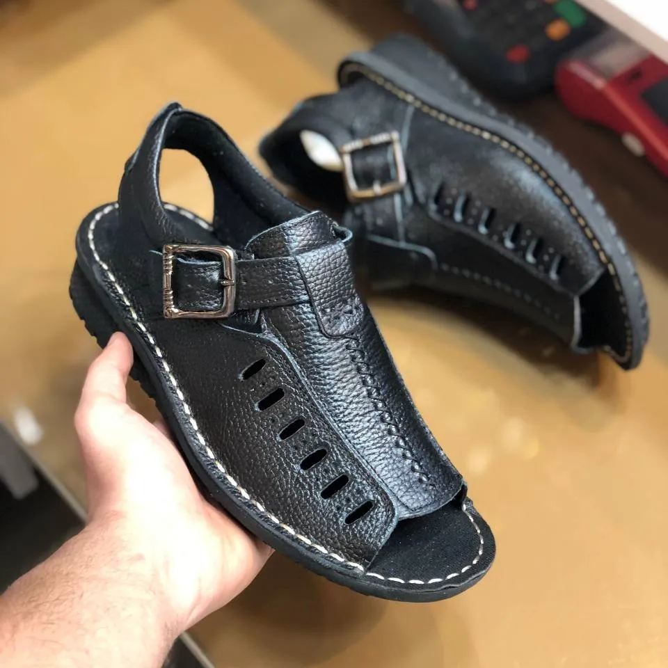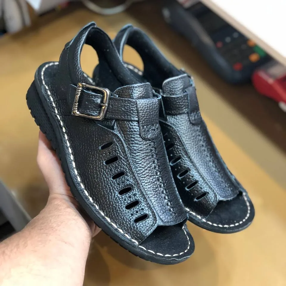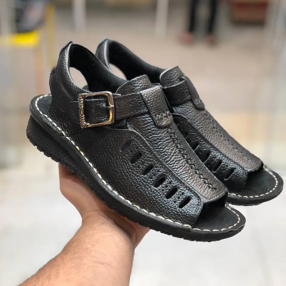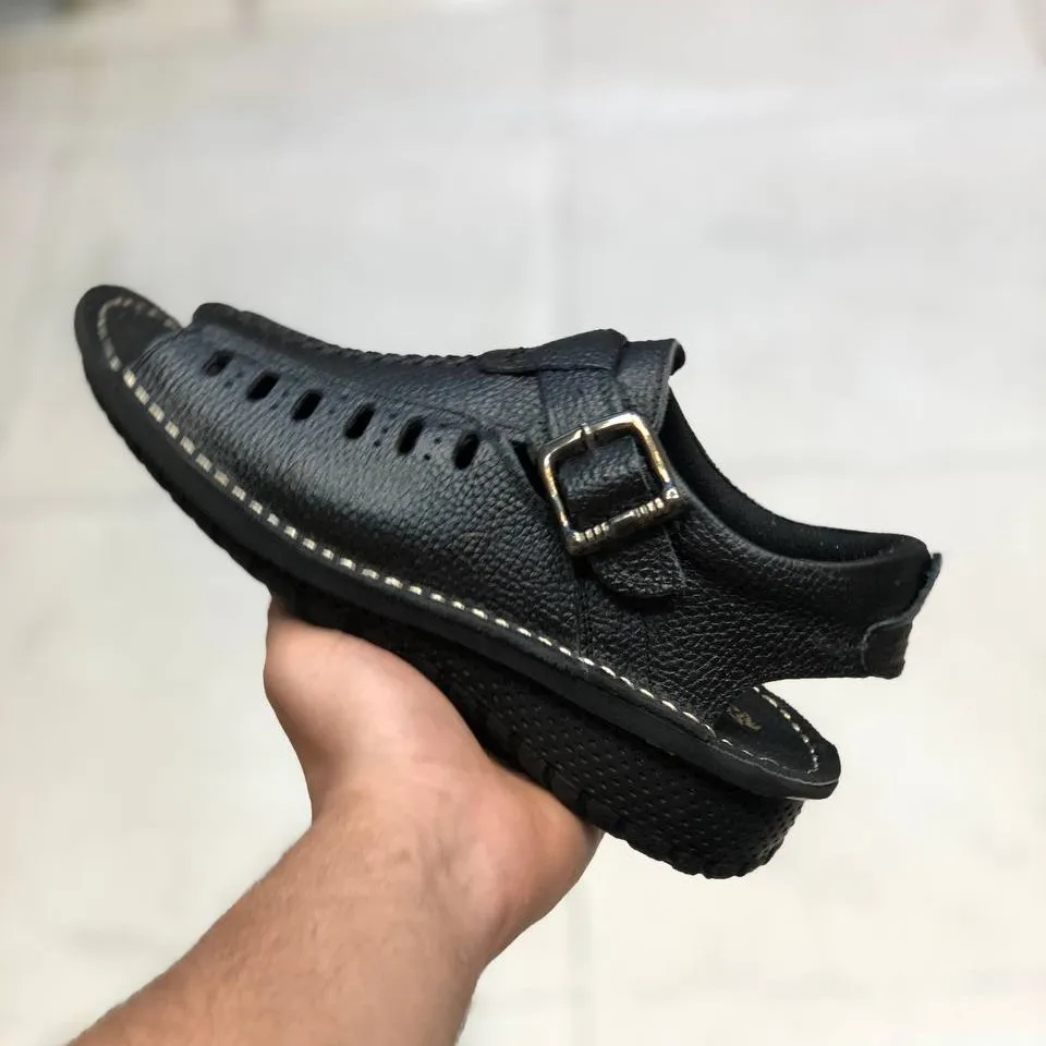 صندل مردانه چرم مدل یاقوت مشکی(498)