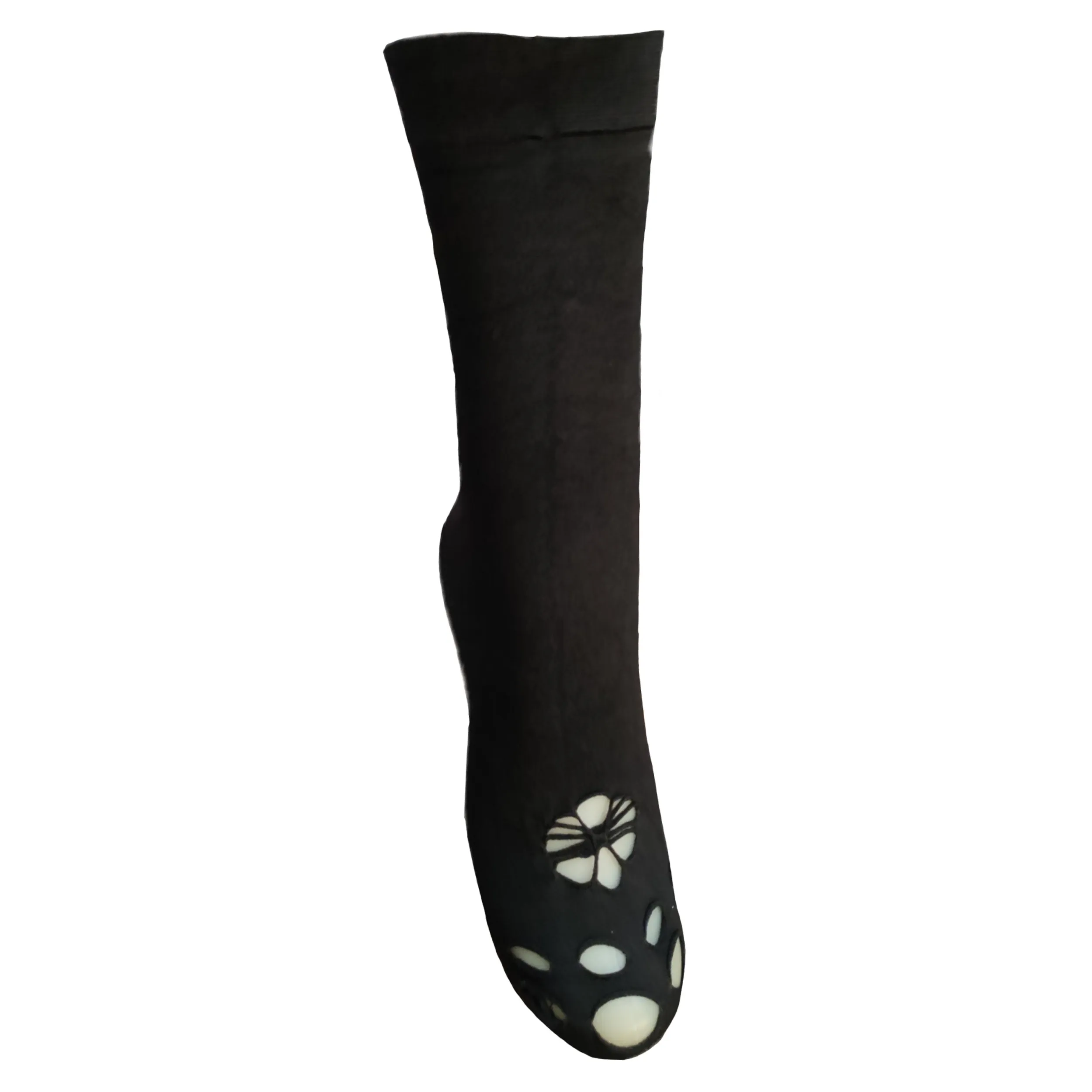 جوراب سه ربع زنانه طرح دار گل و پروانه مشکی