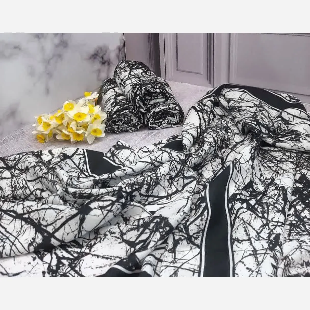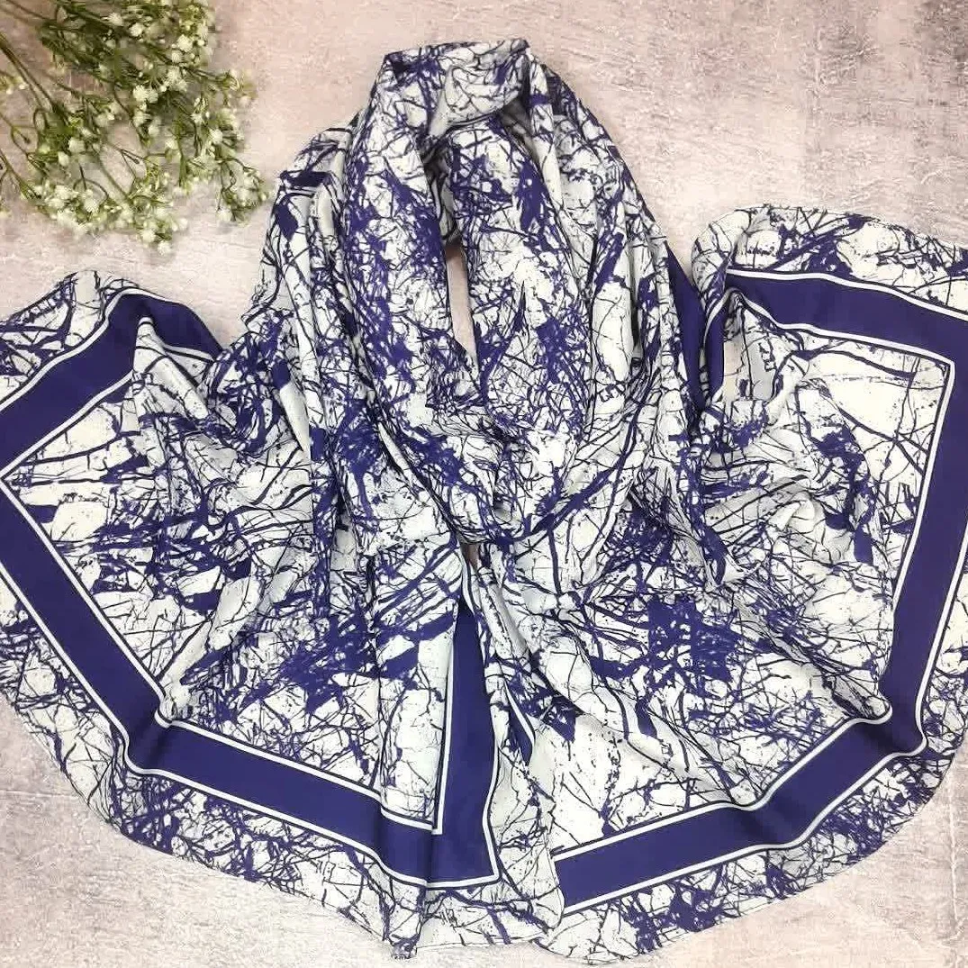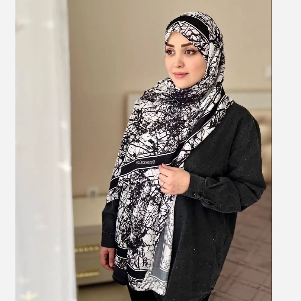 شال اسپرت طرح شاخ و برگ سفید مشکی و سرمهای زنانه