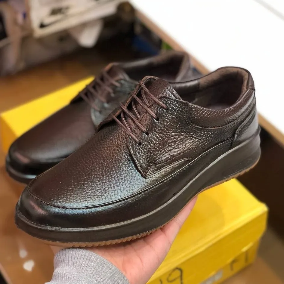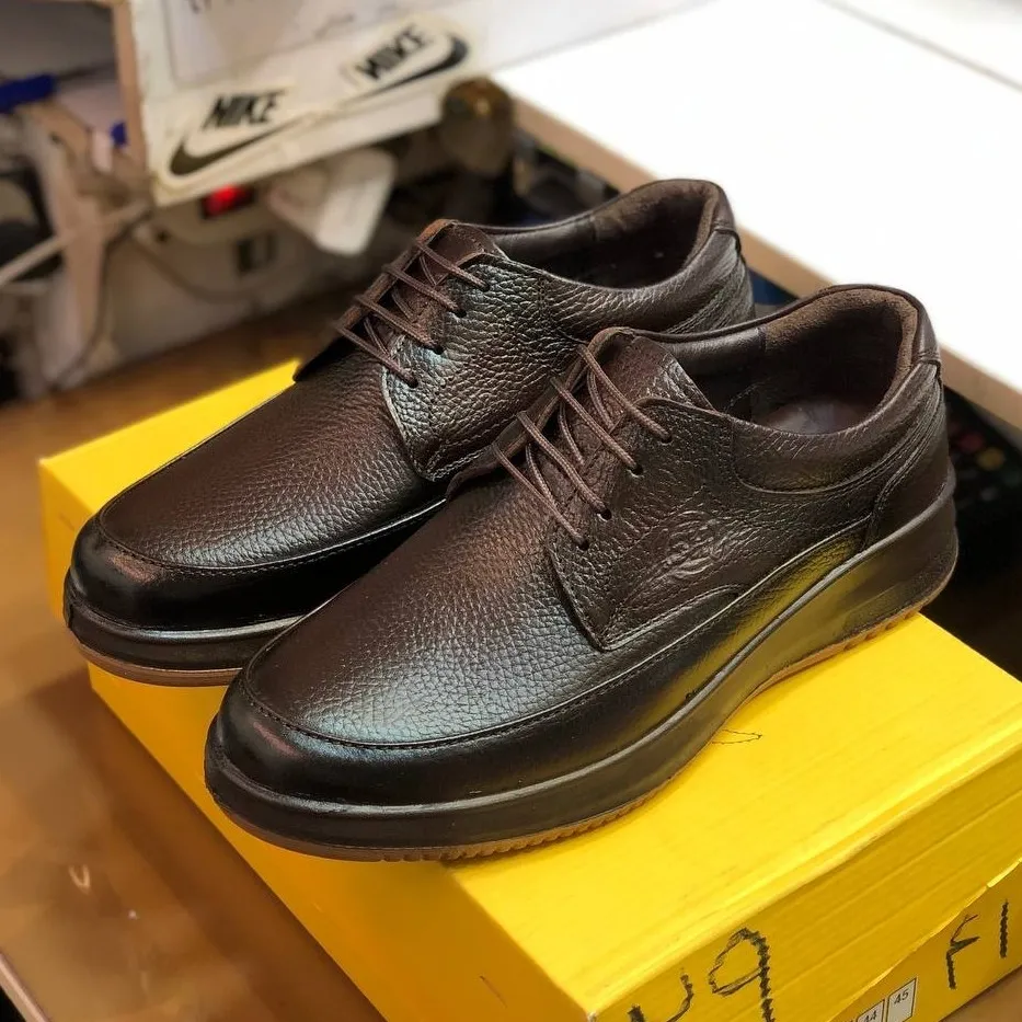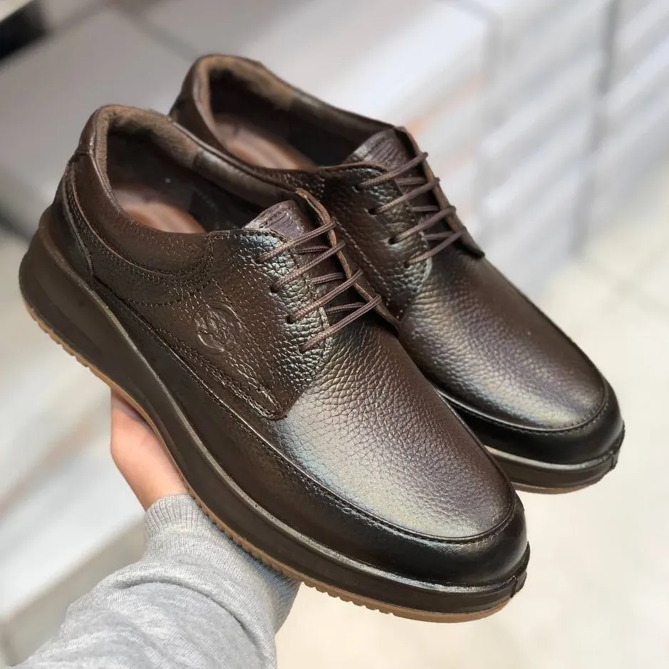 کفش مردانه چرم طبیعی شامی بندی عریض و راحت اداری روزمره