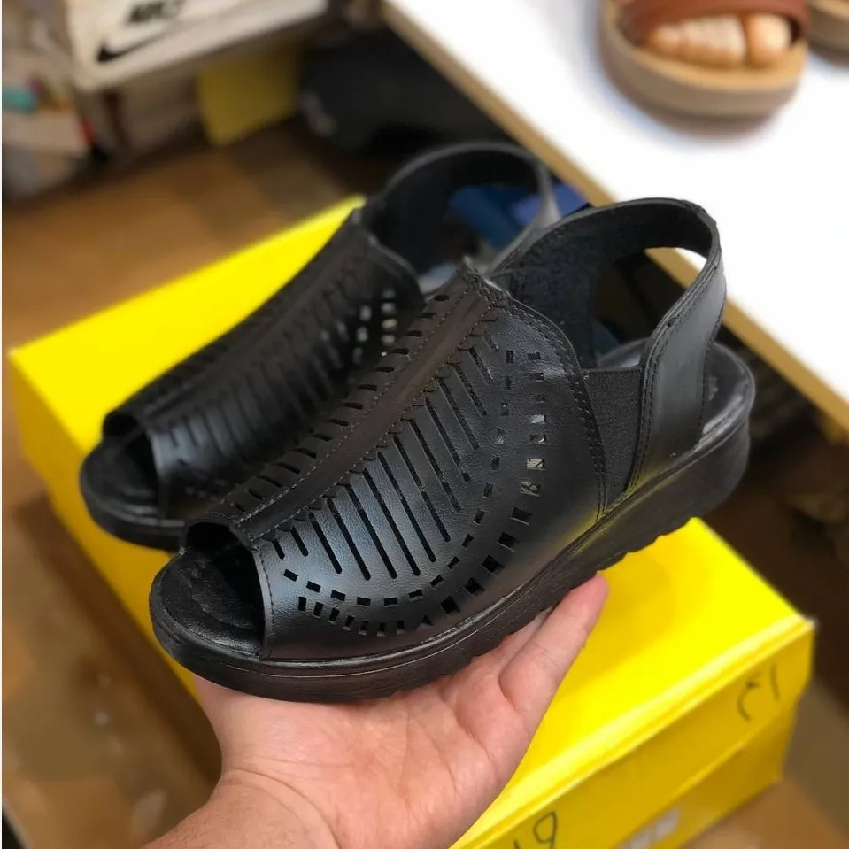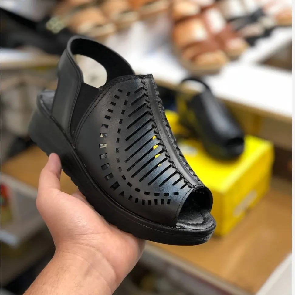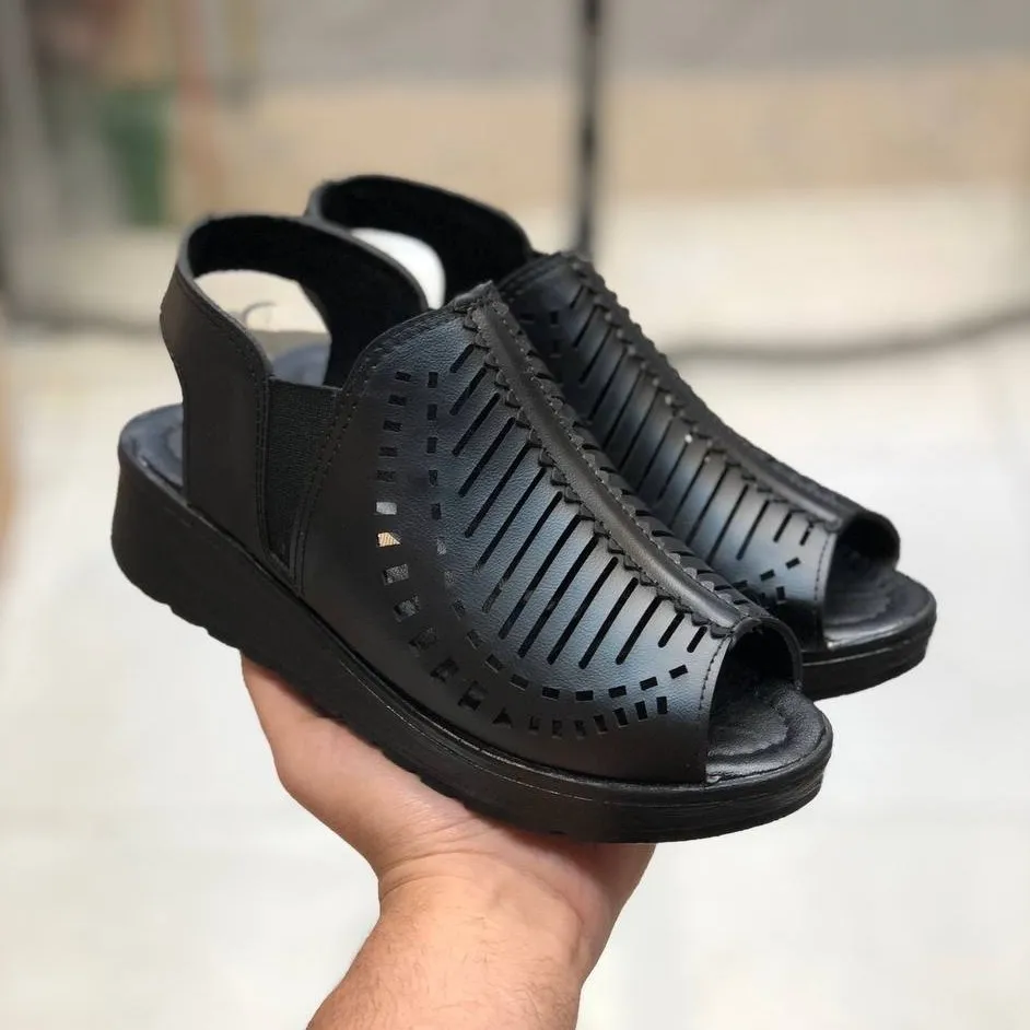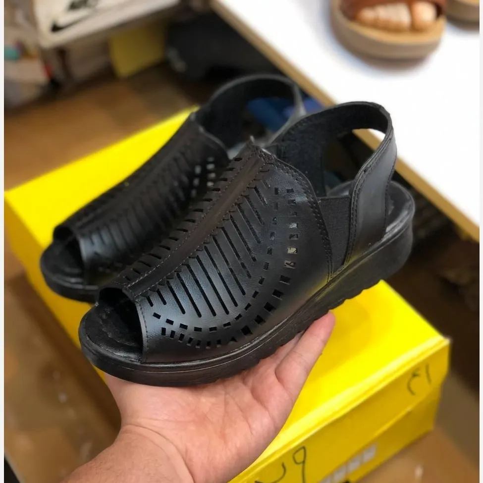 صندل زنانه چرم صنعتی شیک و راحت، مناسب تمام فصول، مشکی