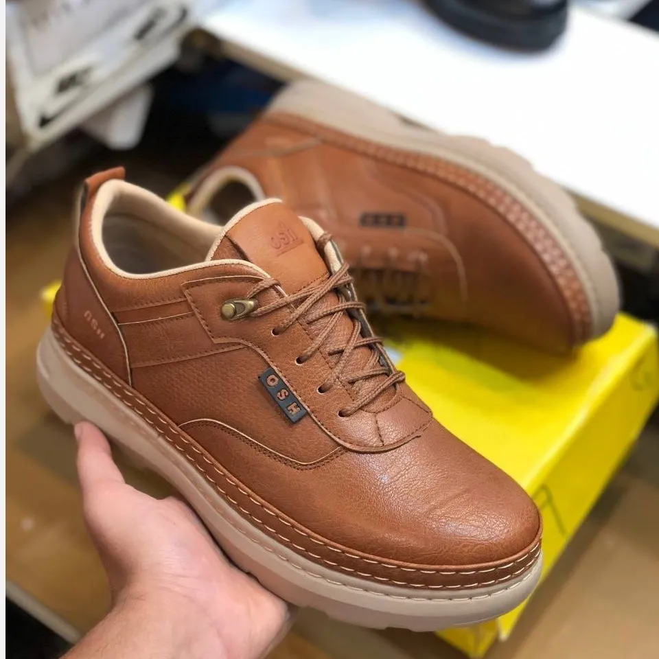 کفش مردانه چرم عسلی شیک و راحت مدل روزمره و نیمه رسمی