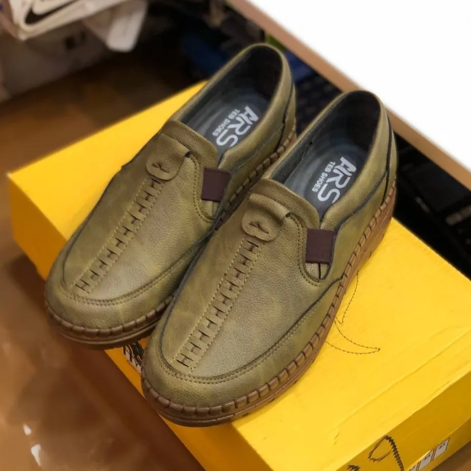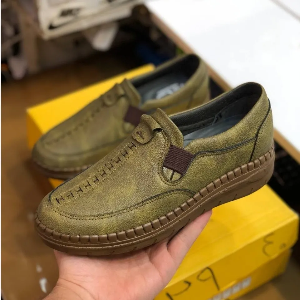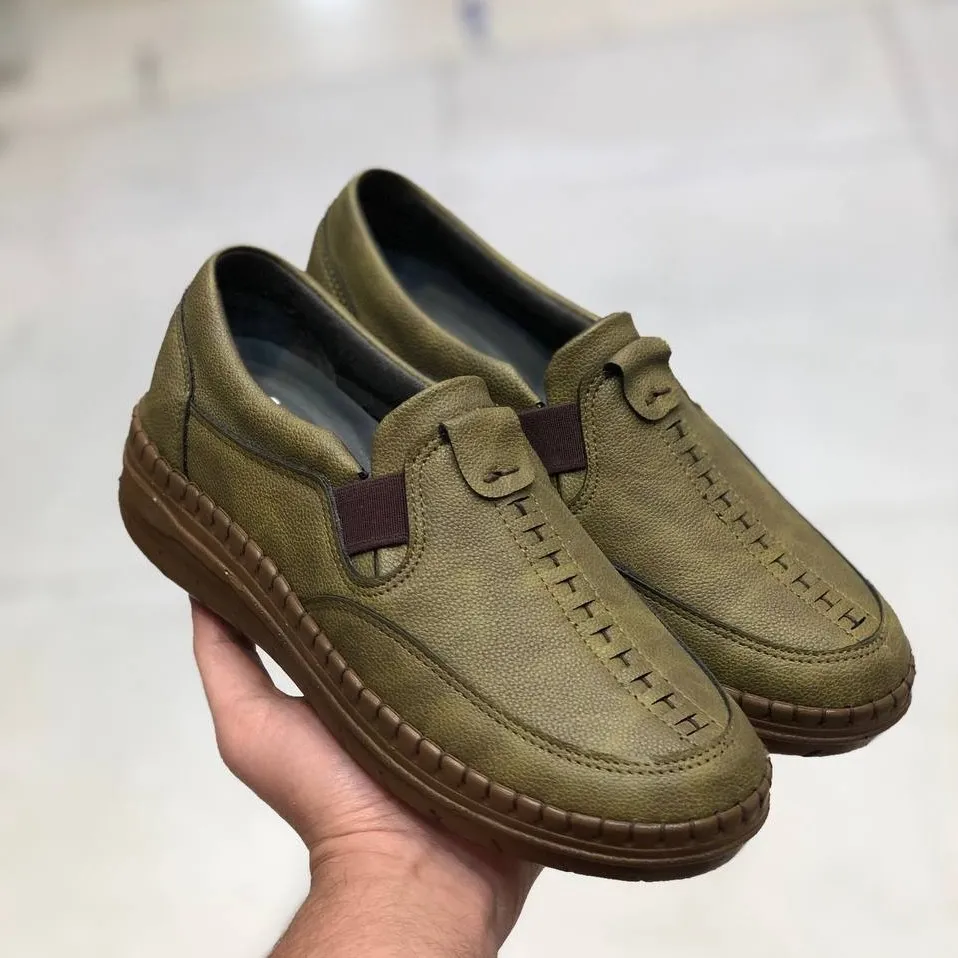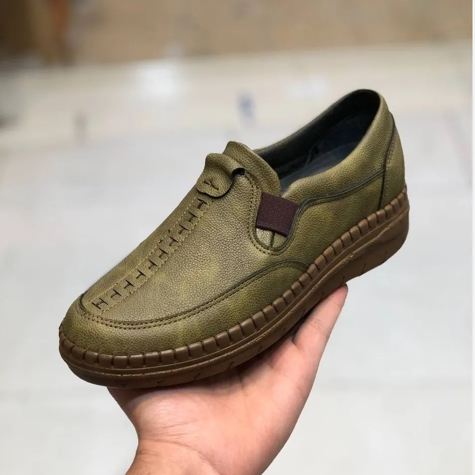 کفش چرم طبی زنانه مدل ساناز رنگ زیتونی