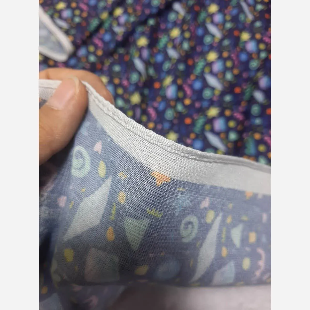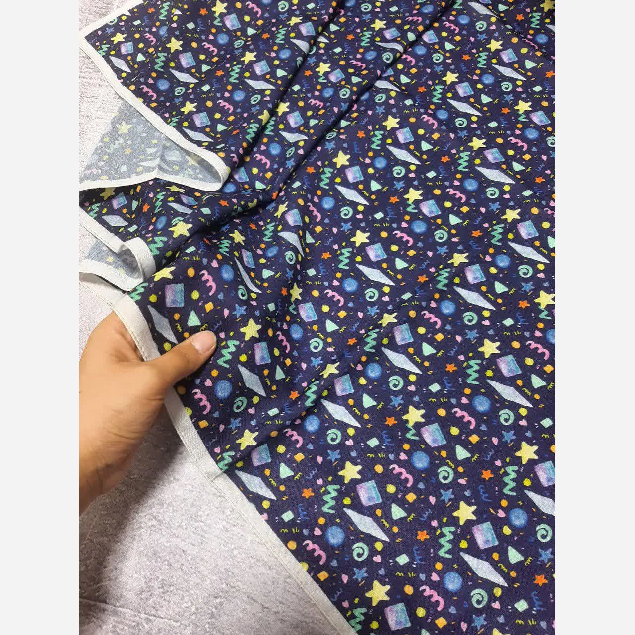 روسری زنانه طرح دار سرمه ای با اشکال هندسی ریز مناسب استفاده روزمره و مهمانی