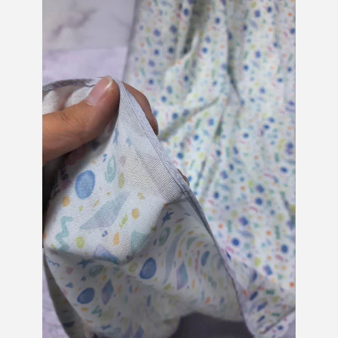این روسری زنانه با زمینه سرمهای خوشرنگ و طرح اشکال هندسی ریز، انتخابی ایدهآل برای تکمیل استایل شما در موقعیتهای مختلف است. تنوع طرح و رنگبندی این روسری به شما امکان میدهد تا به راحتی آن را با انواع لباسهای خود ست کنید.
