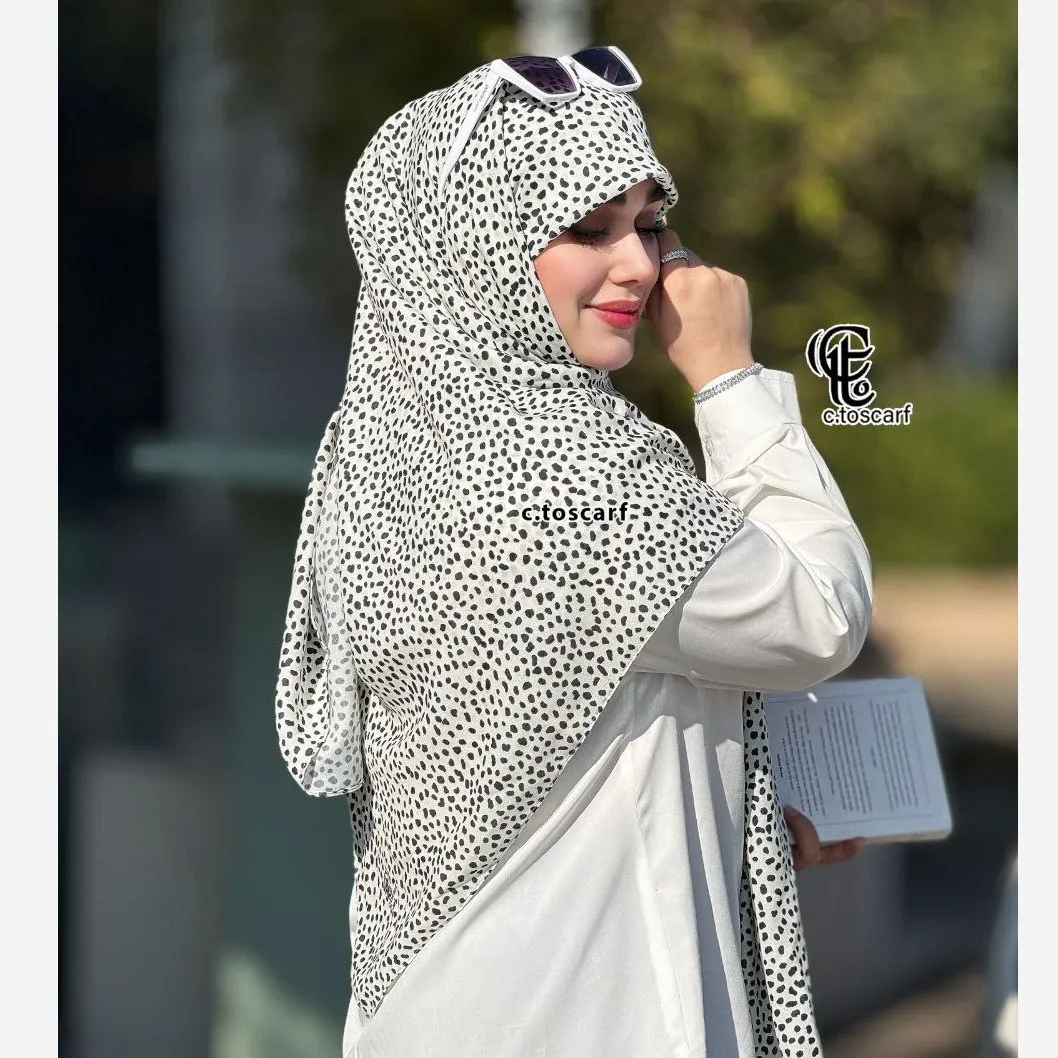 روسری نخی طرح خال خالی دور دوخت قواره 110 - بدون لیز خوردگی