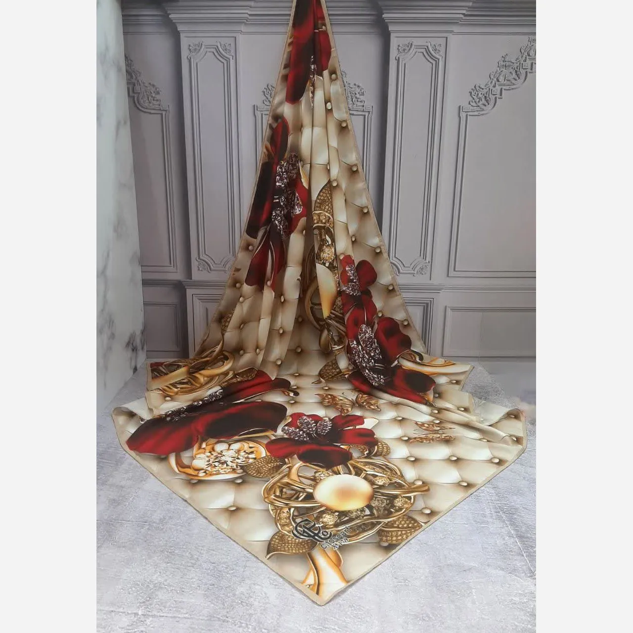 شال و روسری مجلسی طرح شقایق قواره بزرگ نخ کاستوم سیتو 140x140