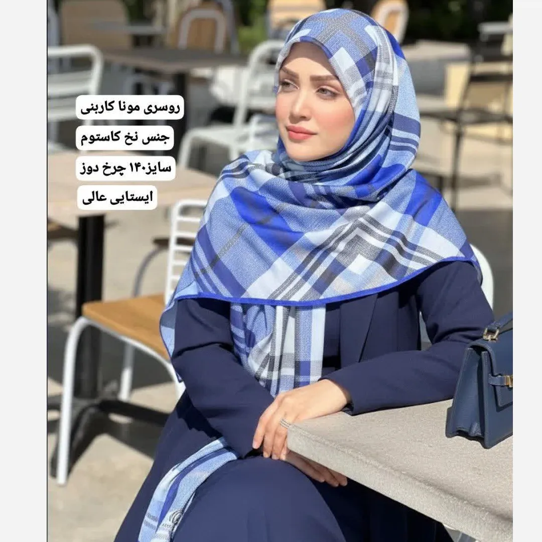 روسری طرح چهارخونه نخی مونالیزا قواره بزرگ 140 سانتیمتر شیک و مجلسی