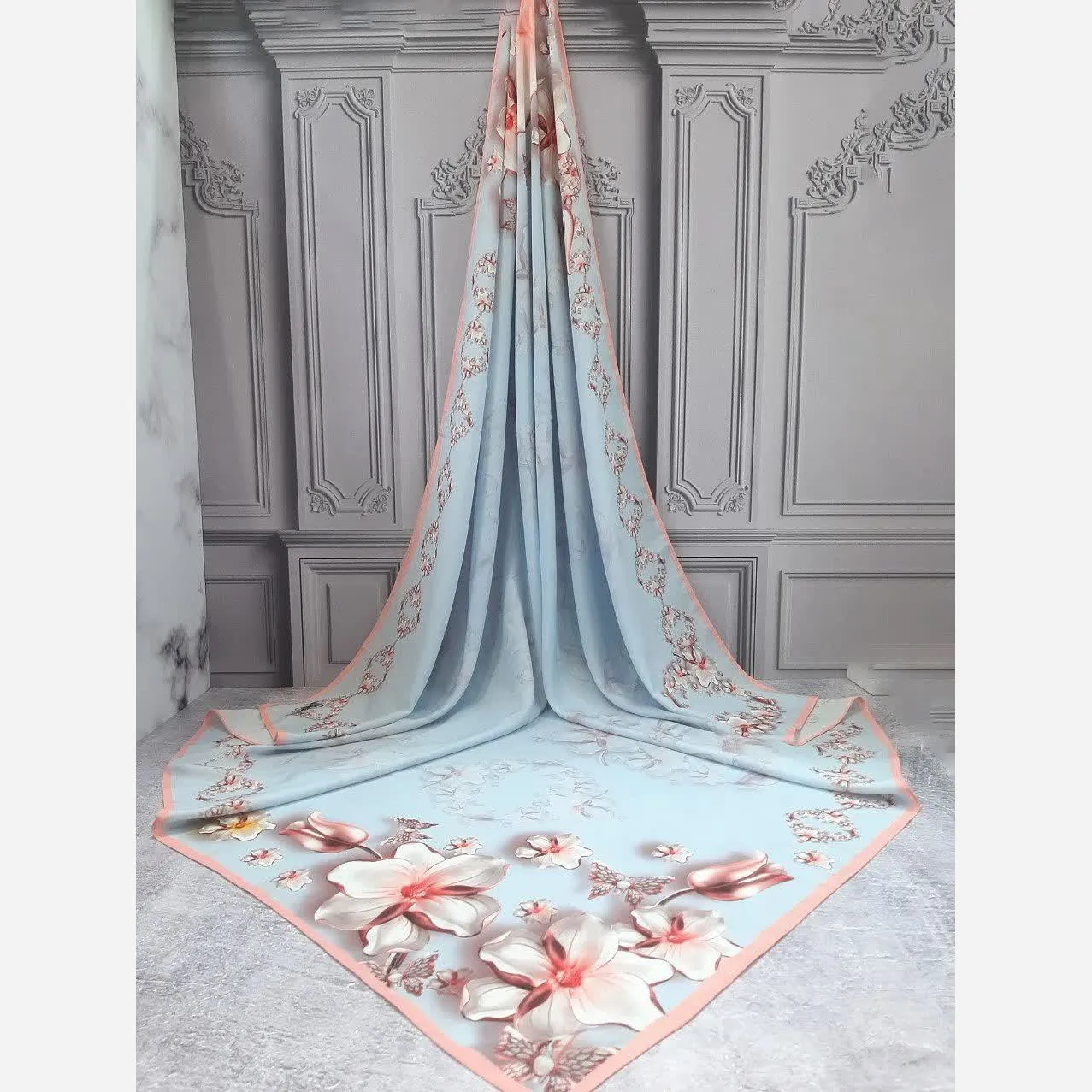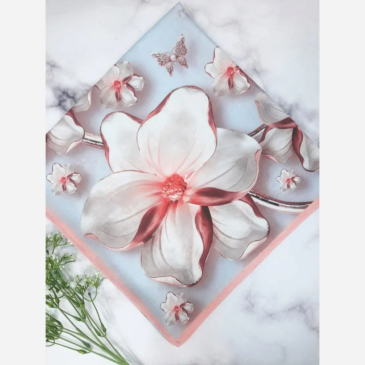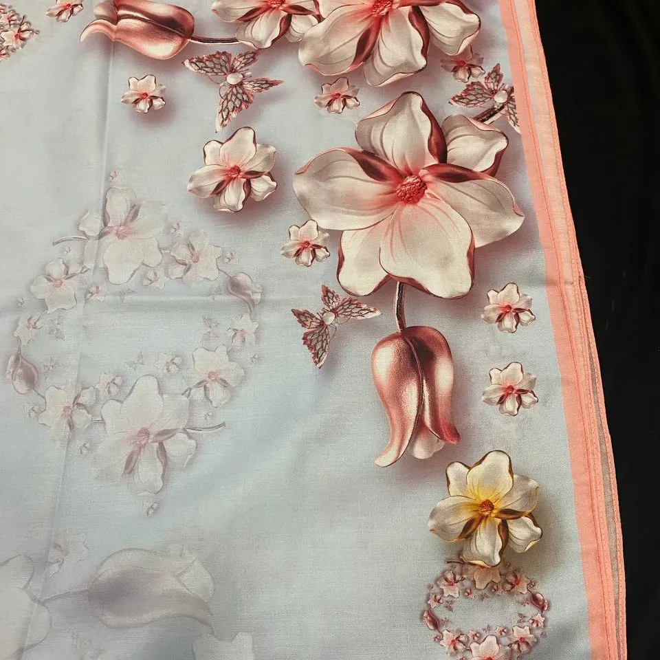 این روسری با ترکیب رنگ آبی و صورتی، حس آرامش و لطافت را به استایل شما میبخشد. طراحی منحصر به فرد آن، حسی ناب و دلنشین را تداعی میکند.