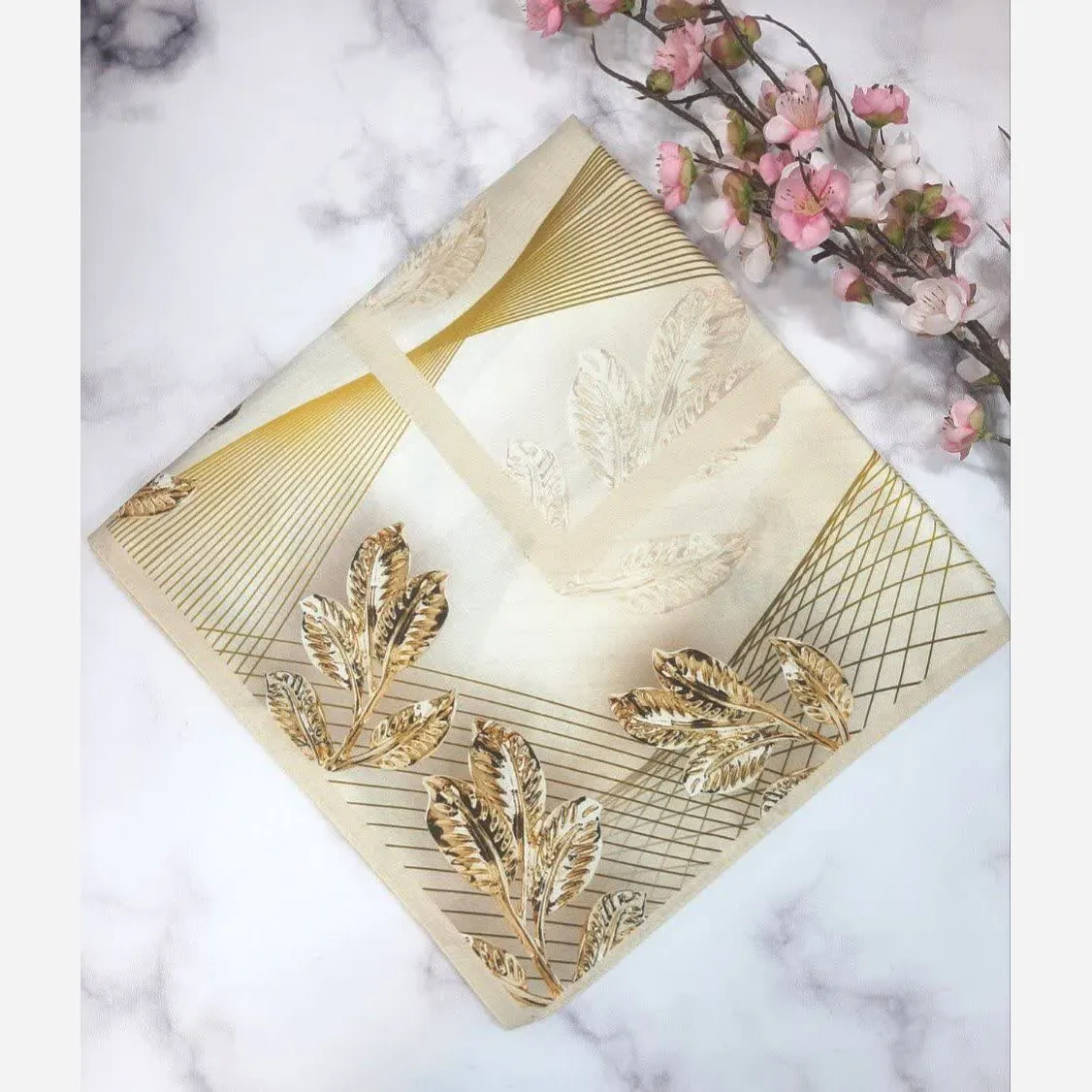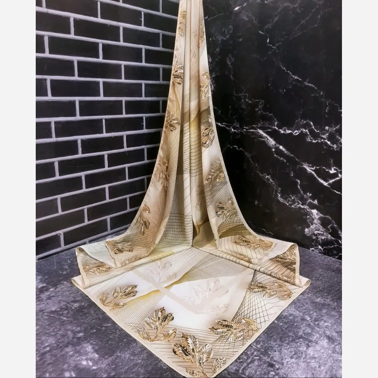 روسری طرح طلا نخی قواره بزرگ 140 سانتیمتر دور چرخ دوز بدون سُرخوردگی