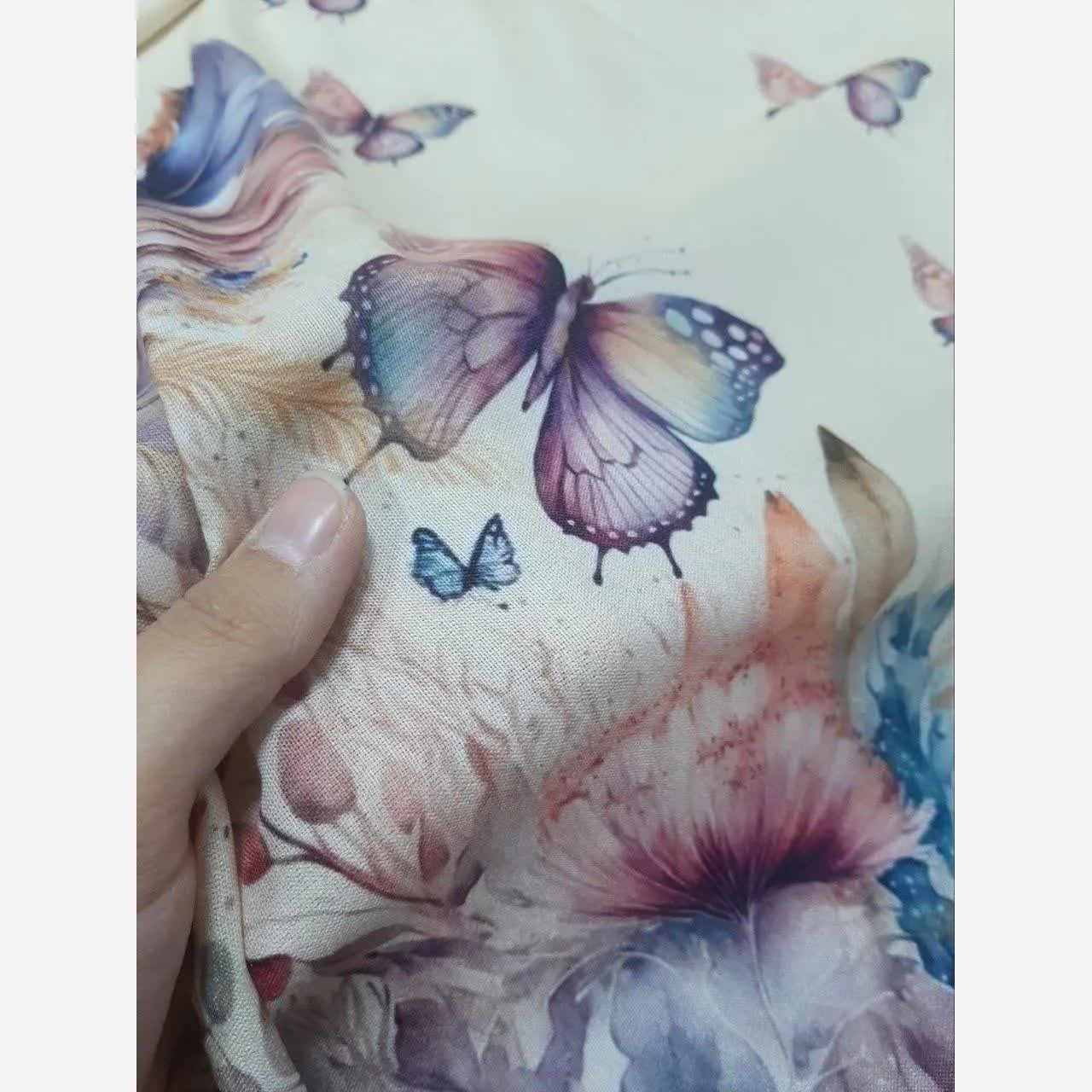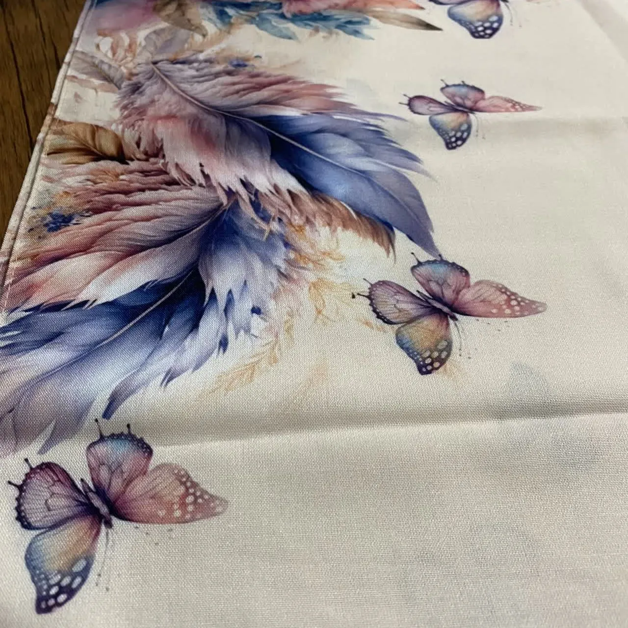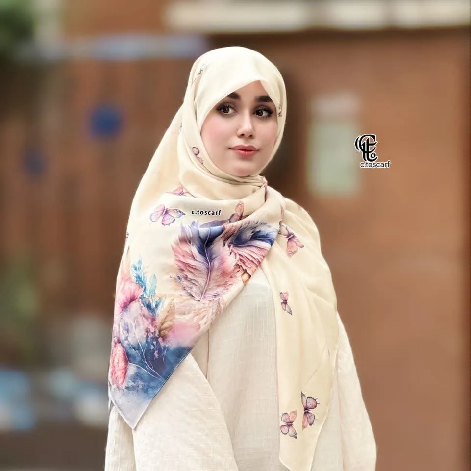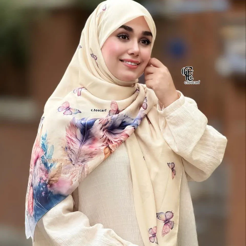 روسری طرح پردیس با ابعاد 140 سانتیمتر، انتخابی ایدهآل برای تکمیل استایل شماست. این روسری با طرح زیبای پروانه و پر، جلوهای خاص و چشمنواز به استایل شما میبخشد.