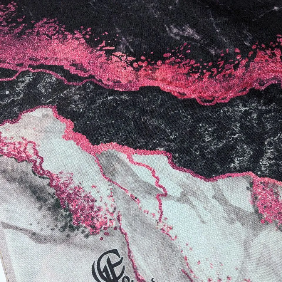 روسری نخی کاستوم رزین سرخابی مشکی طرح سنگ زنانه