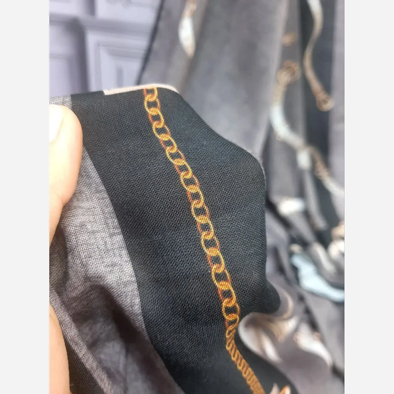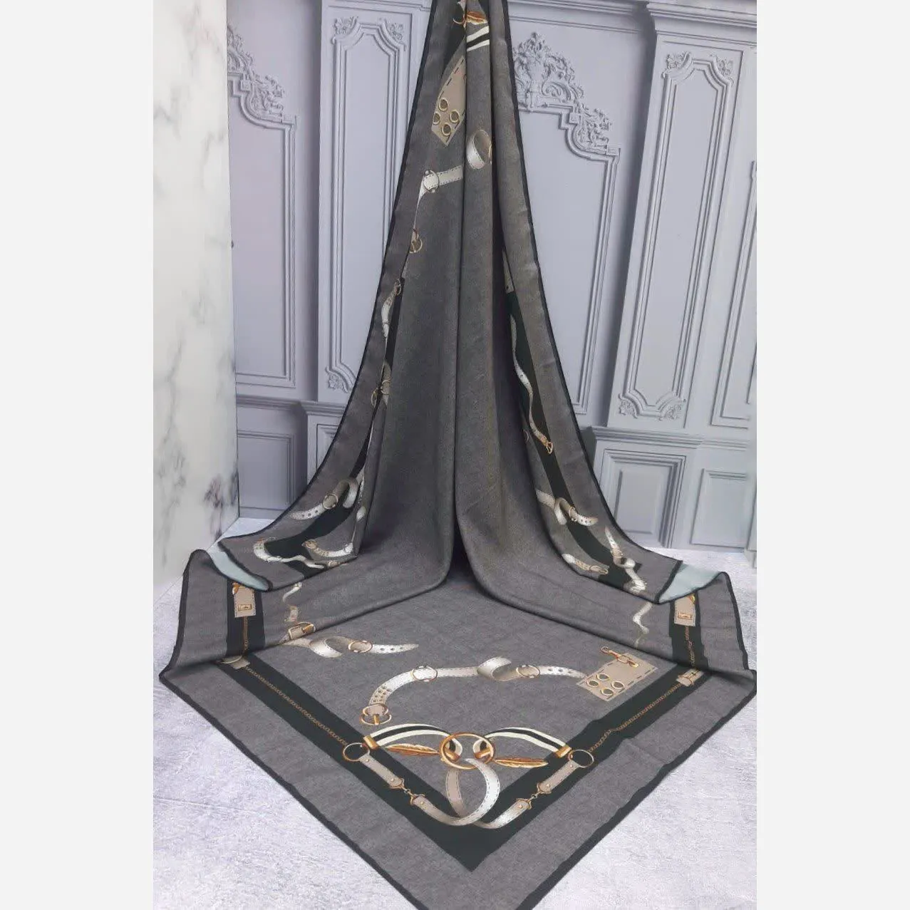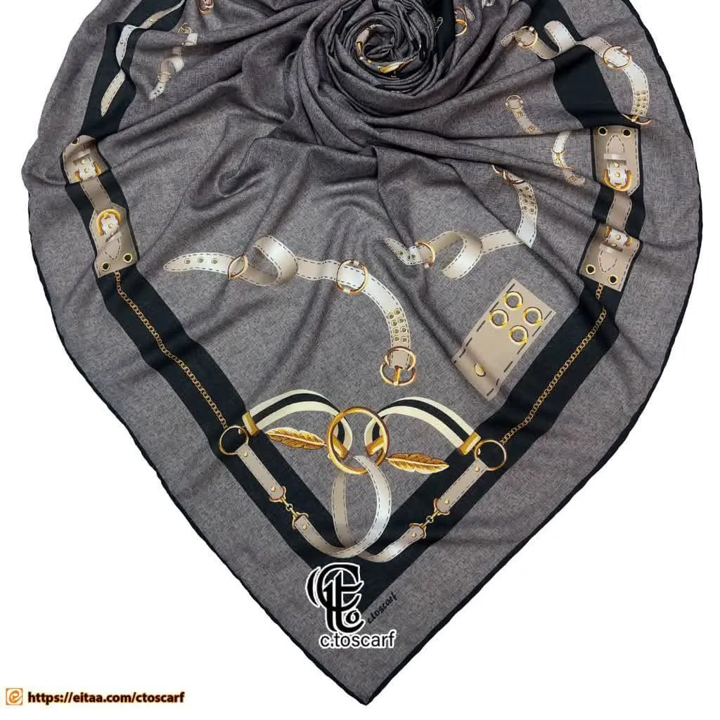روسری طرح دیانا طوسی قواره بزرگ نخ کاستوم سیتو چرخ دوز زنانه شیک
