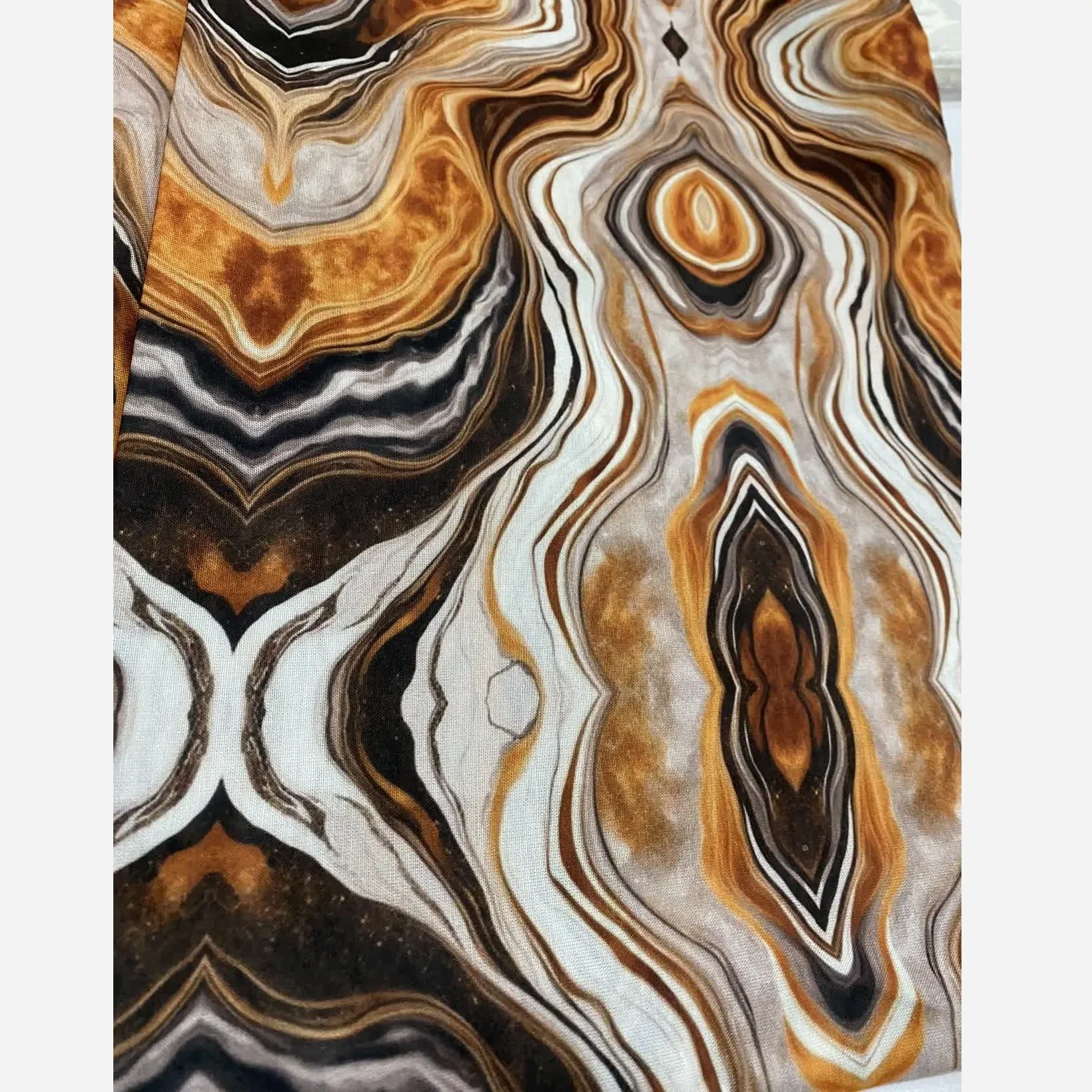 روسری مجلسی طرح عسل نخ کاستوم قواره 110 دور چرخ دوز کرم قهوه ای عسلی