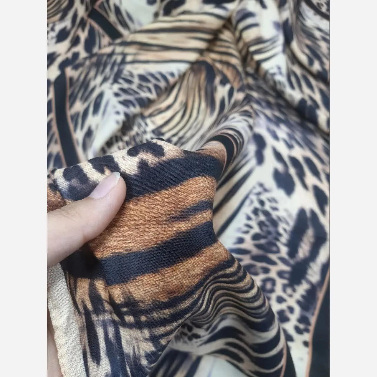 روسری طرح پلنگی قواره بزرگ 140 سانتیمتر جنس نخ کاستوم سیتو