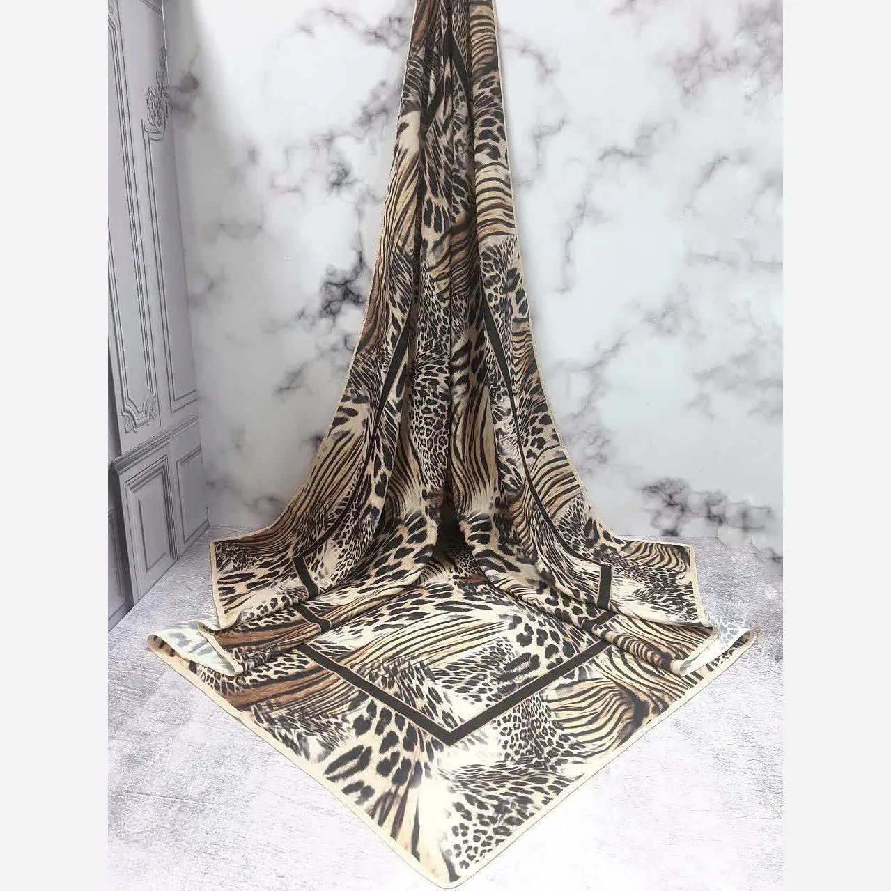 روسری طرح پلنگی قواره بزرگ 140 سانتیمتر