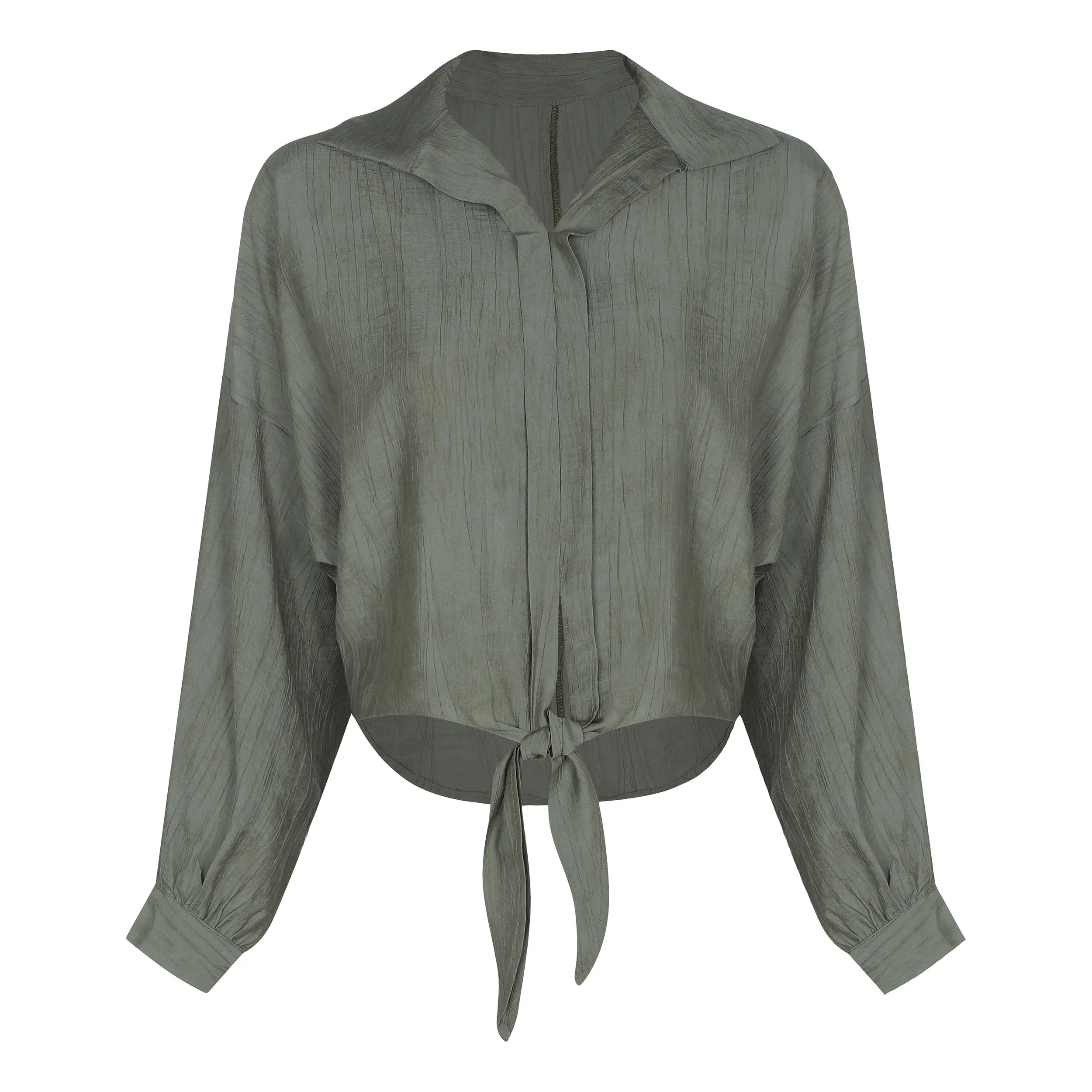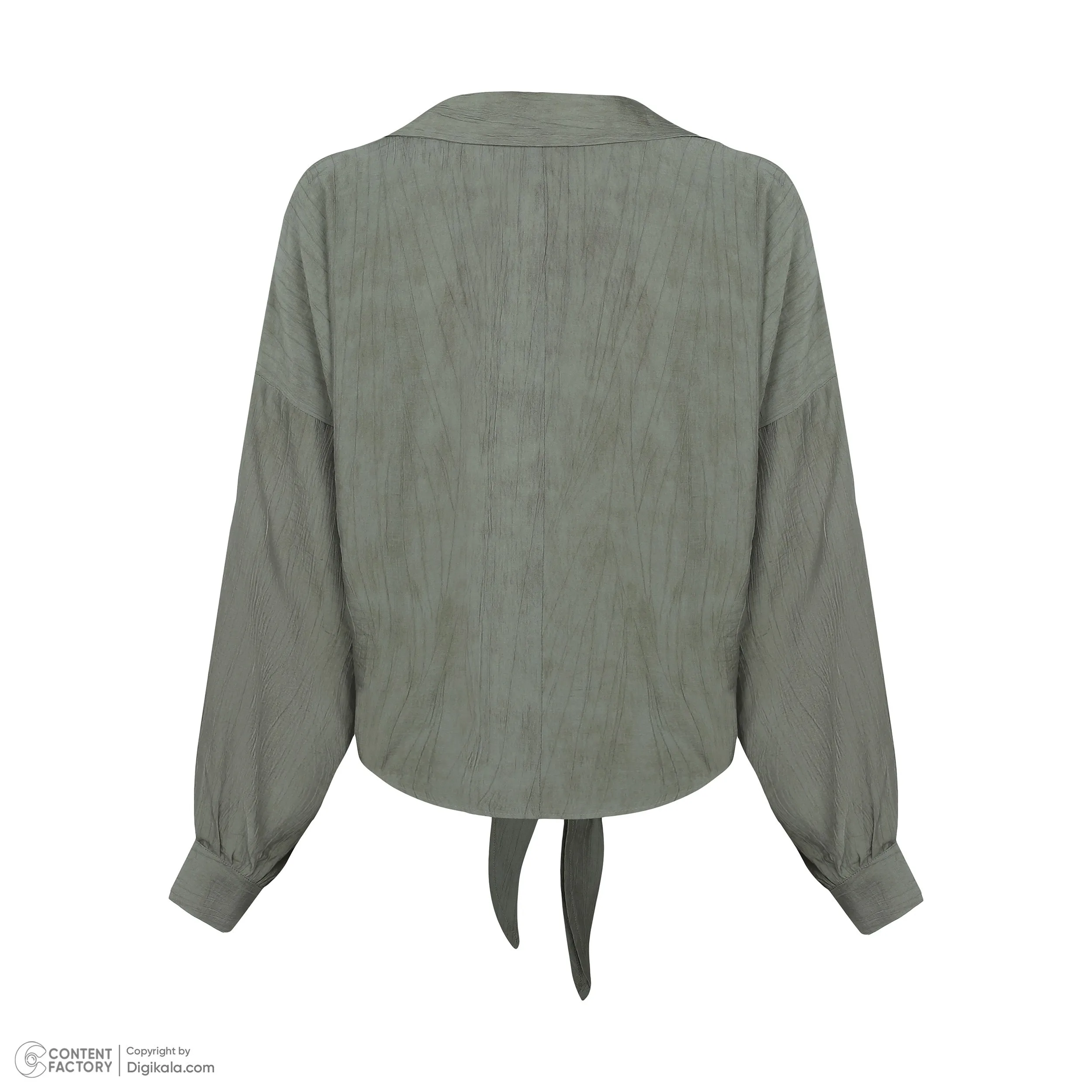 شومیز گرهی زنانه سبز یشمی پارچه شانتون سایز 38 تا 44
