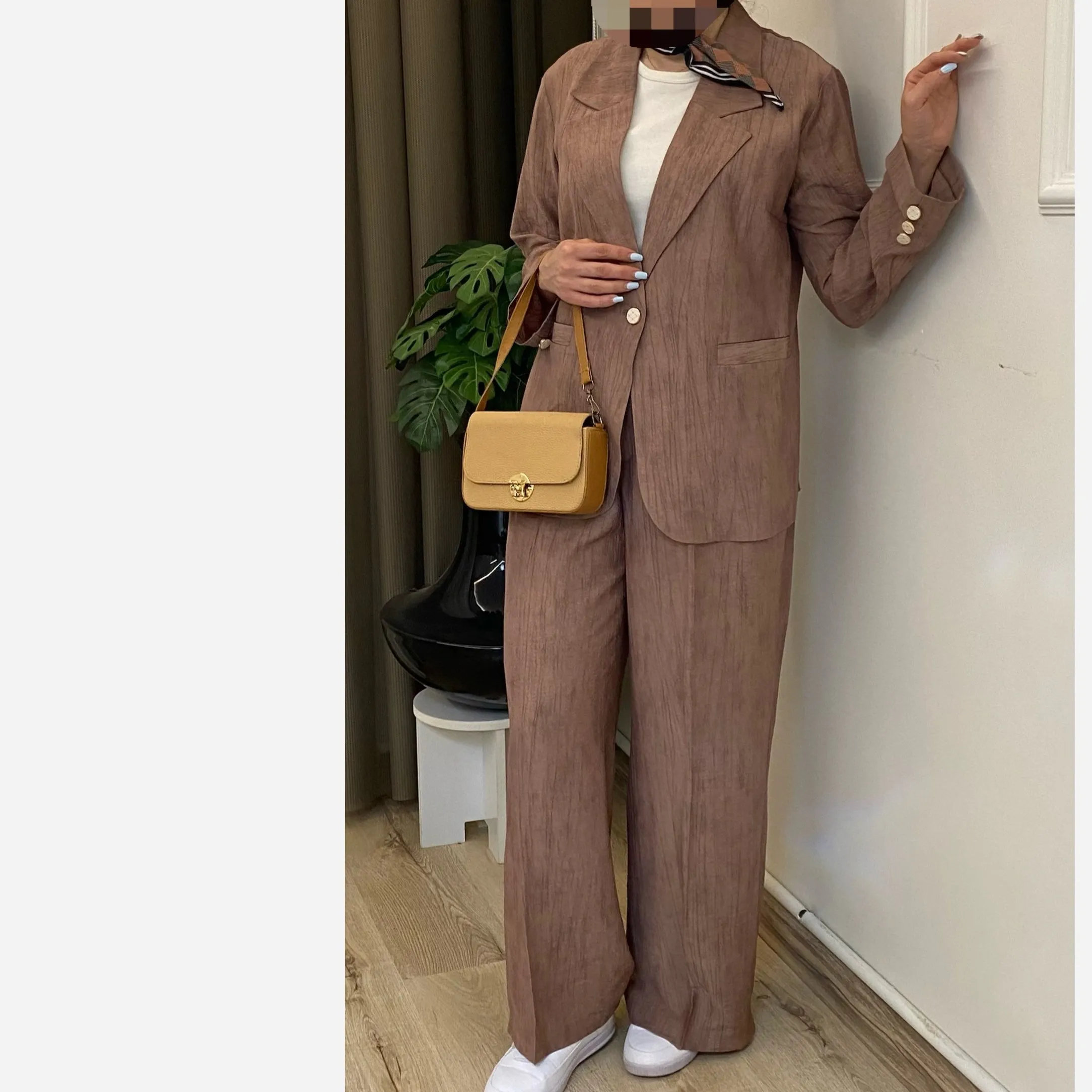 این ست کت و شلوار زنانه با جنس شانتون گازوئیلی درجه یک، انتخابی شیک و زیبا برای بانوان است. رنگ قهوهای موکا خاص و گرم این محصول، جلوهای منحصر به فرد به استایل شما میبخشد.
