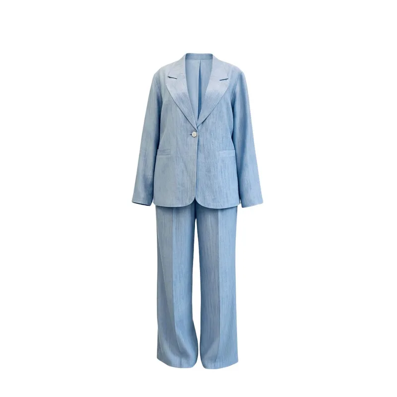 کت و شلوار زنانه شیک آبی مزون دوز جنس شانتون مناسب مجالس و استایل روز