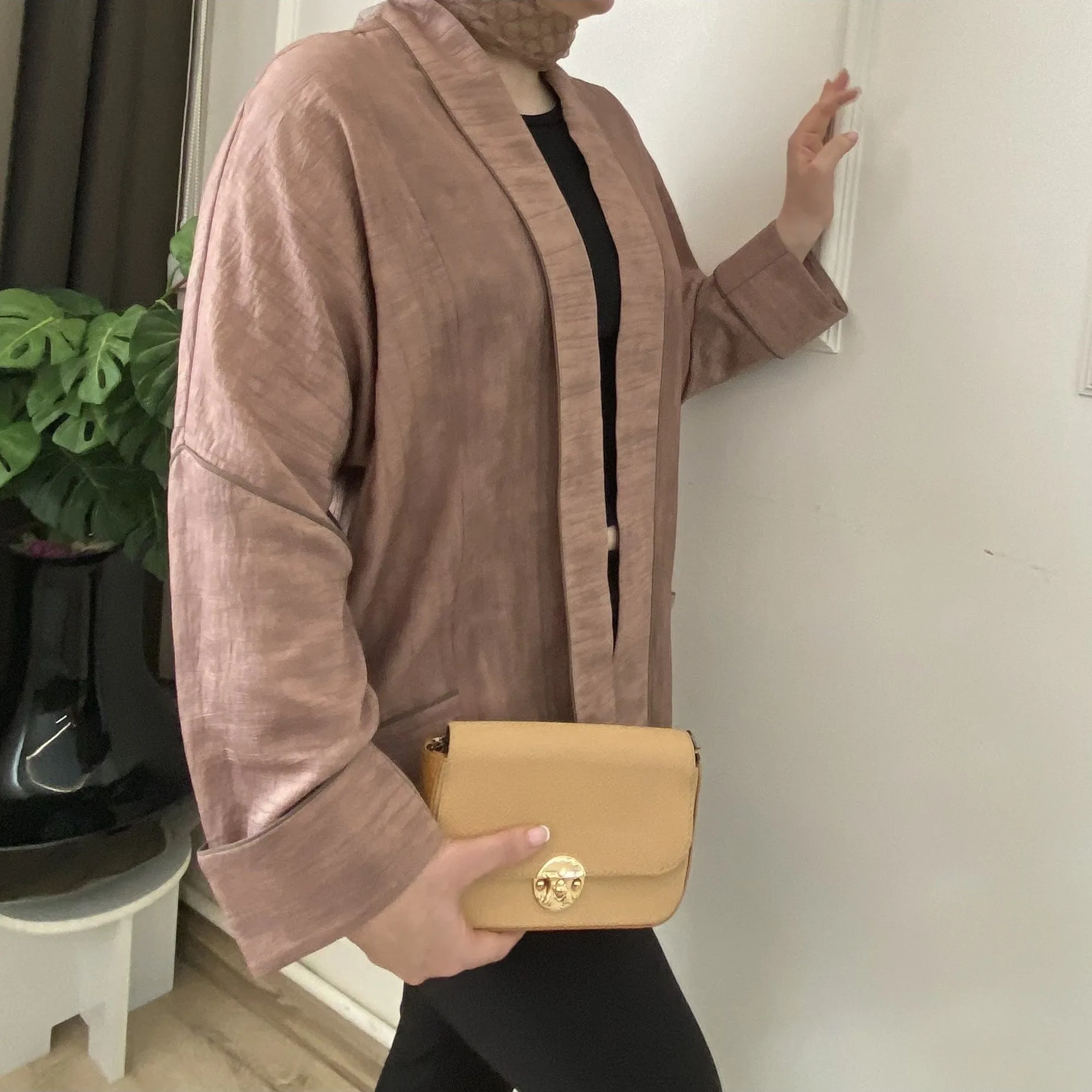 این مانتو با رنگ قهوهای موکا و طراحی آستین کیمانو، انتخابی شیک و کاربردی برای بانوان است. جنس شانتون گازوییلی باکیفیت، لطافت و خنکی بینظیری را به ارمغان میآورد و آن را به گزینهای ایدهآل برای فصول گرم سال تبدیل کرده است.