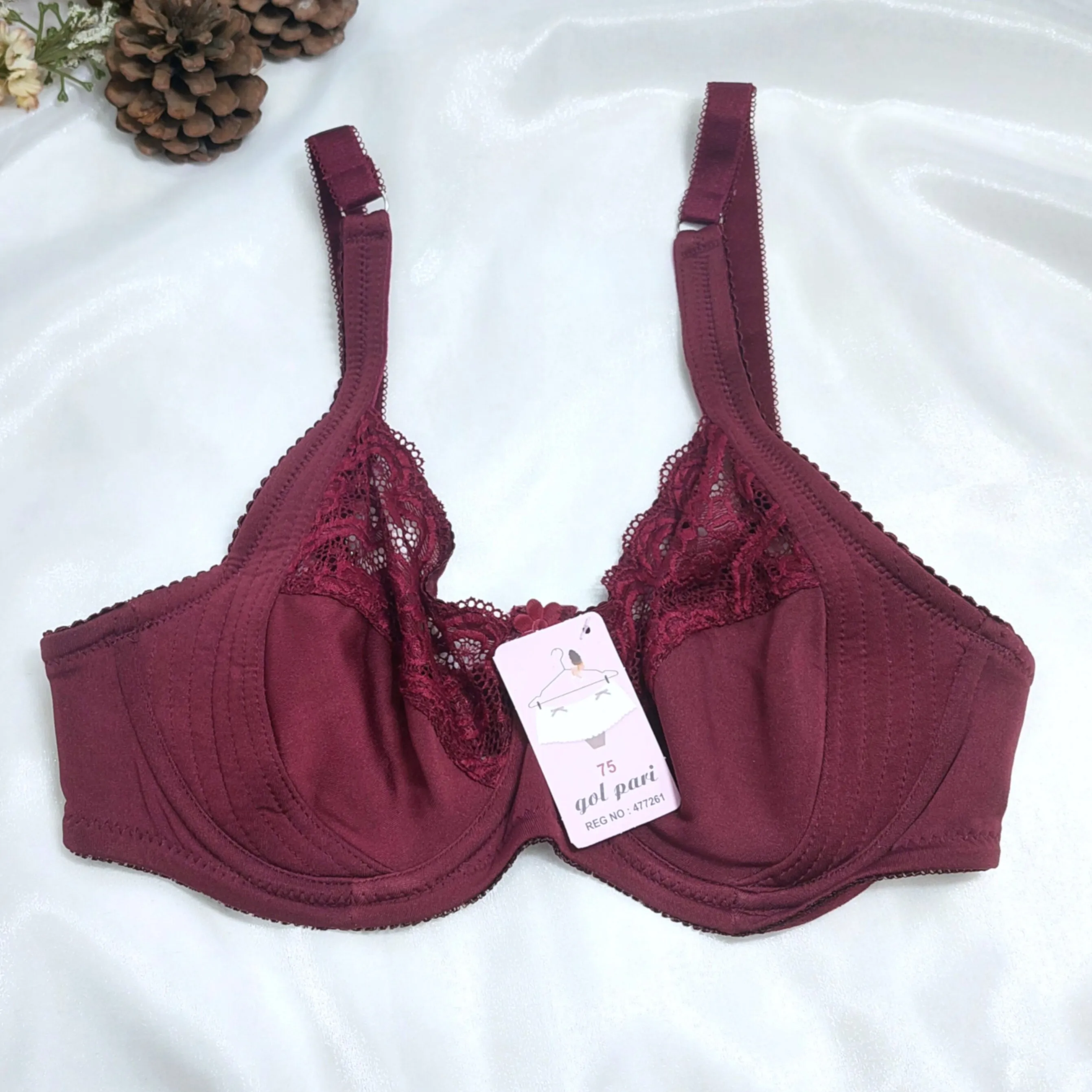 - سایز 75: طول سوتین 68 سانتیمتر (مناسب دور کمر 74 تا 81 سانتیمتر) - طول کاپ 16 سانتیمتر، عرض کاپ 13 سانتیمتر