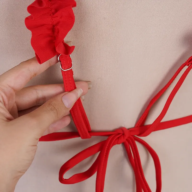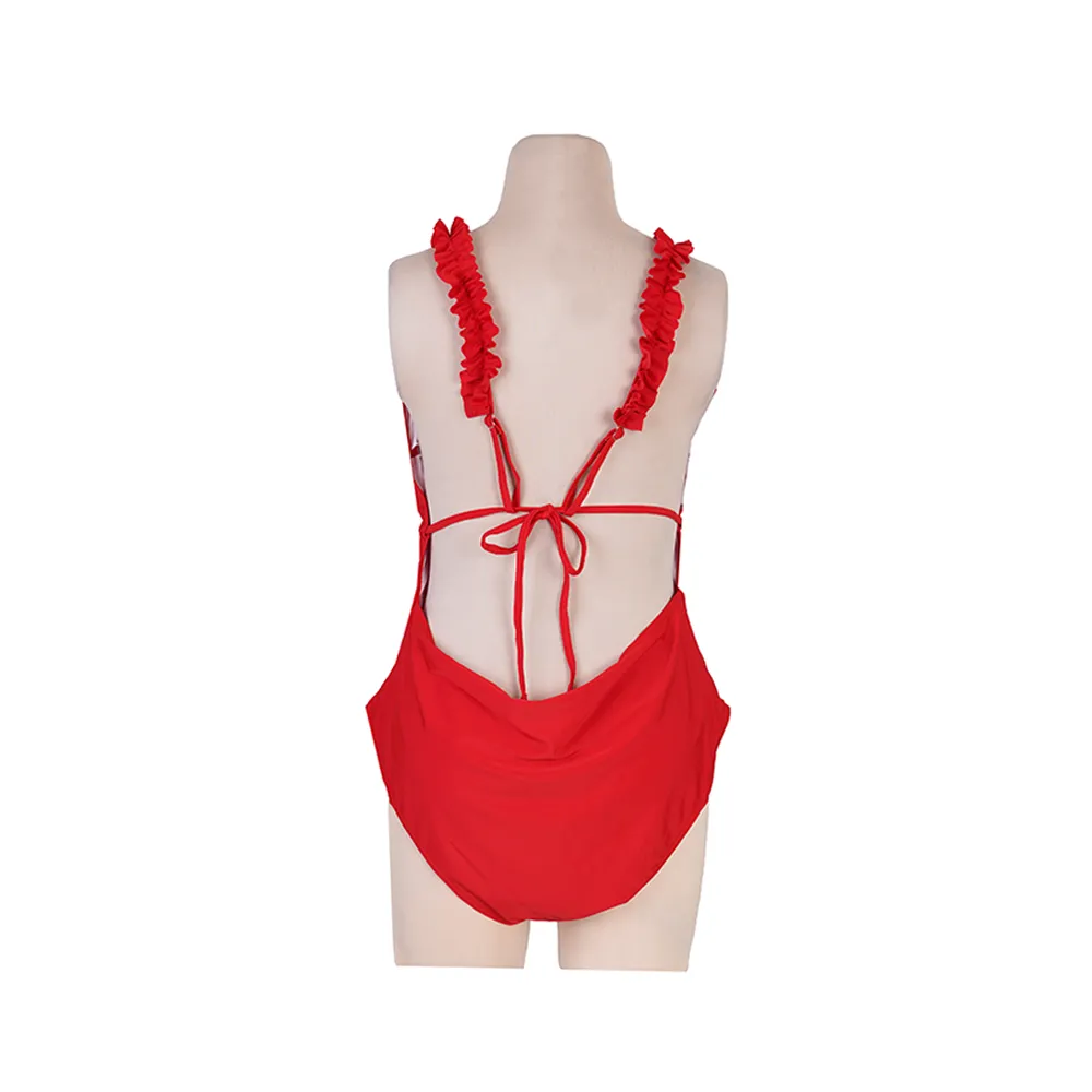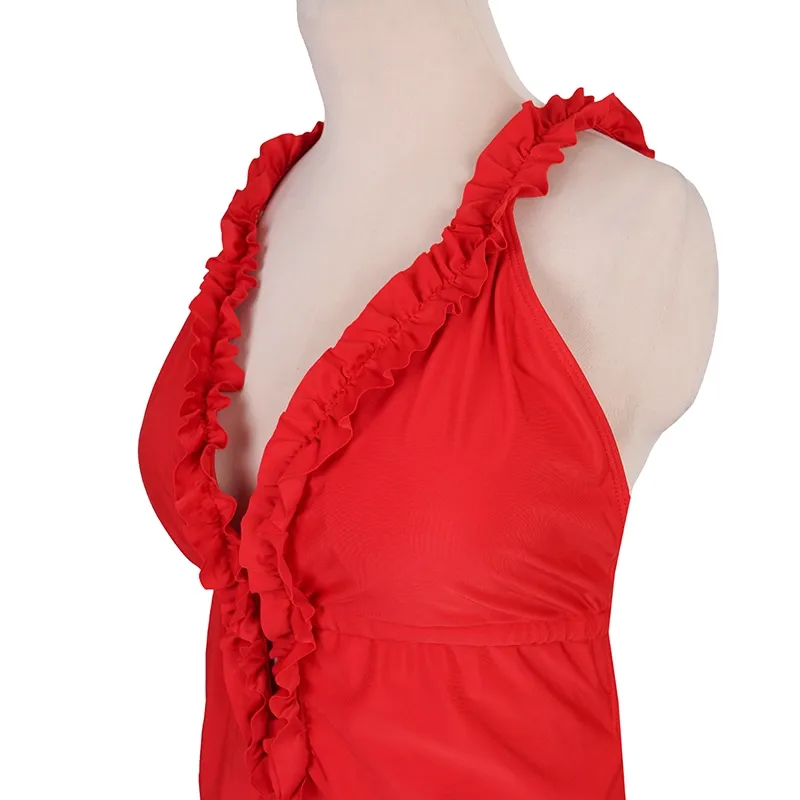 مایو زنانه قرمز کاپ دار مدل اسلیپ سایز 3XL با پد متحرک و جنس استرج