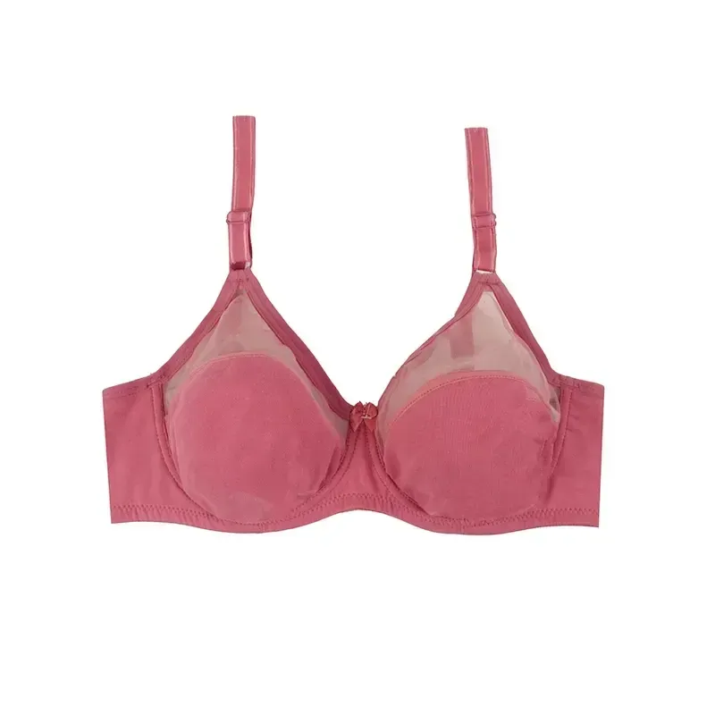 سوتین زنانه فنردار کاپ B نخی طرح دار با بند قابل تنظیم