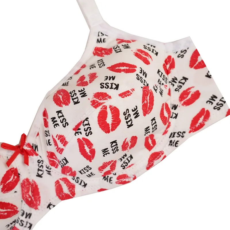 سوتین فانتزی نخی کاپ دار طرح لب زنانه مدل فنردار اسفنجی
