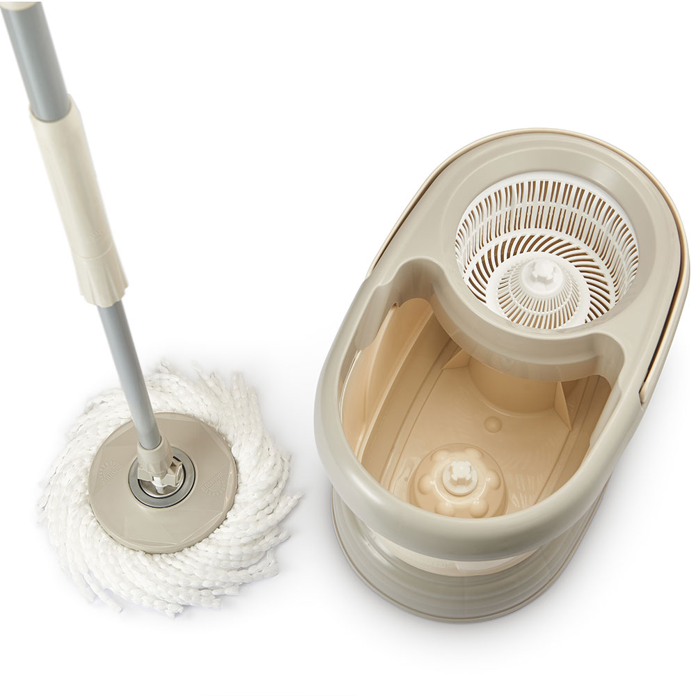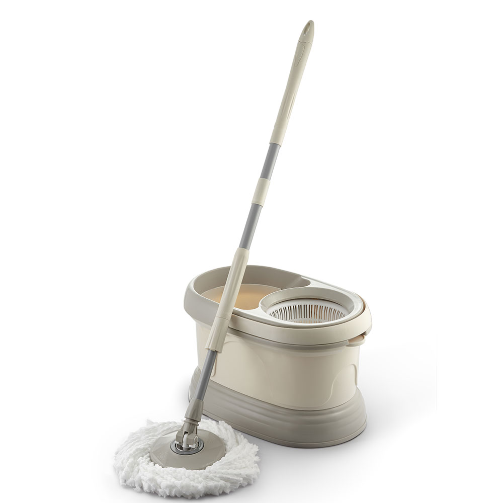با قرار دادن دسته زمین شوی در سبد آبگیری و بالا و پایین بردن آن، میتوانید مکانیزم چرخشی را به حرکت درآورده تا آبگیری انجام شود. حالا میتوانید با تنظیم ارتفاع دسته به راحتی نظافت خود را آغاز کنید.