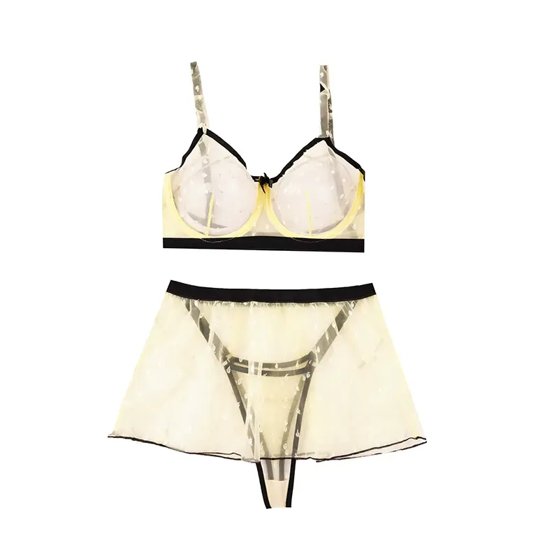 ست لباس زیر فانتزی زنانه طرحدار تور و حریر کاپ B لامبادا