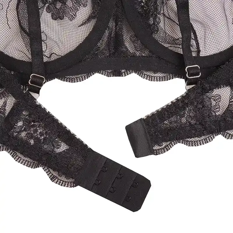 ست لباس زیر زنانه تور گیپور فنردار طرح دار مشکی