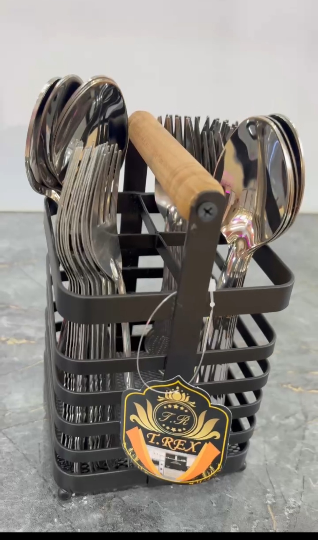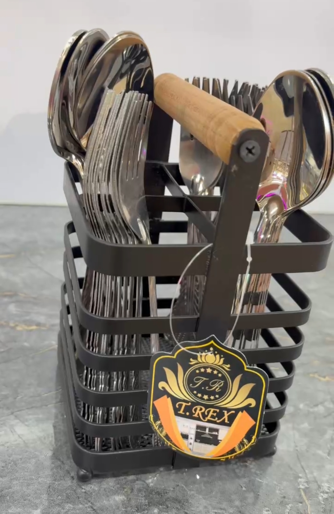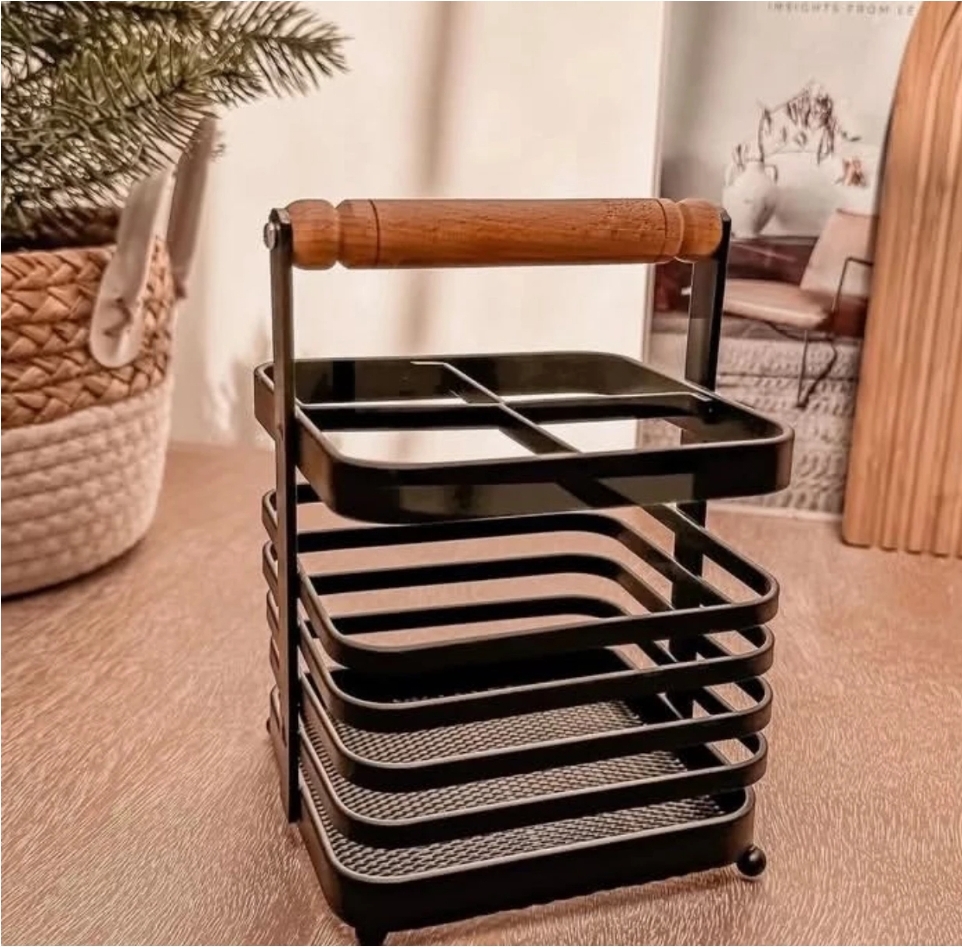استند قاشق و ملاقه فلزی مشکی دسته چوب