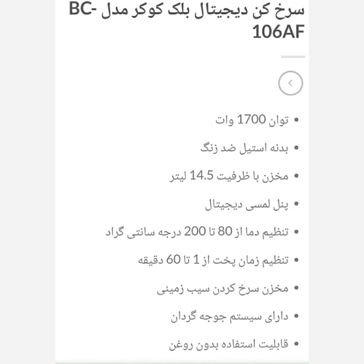 سرخ کن تمام دیجیتال بلک کوکرمدلBC-106AF