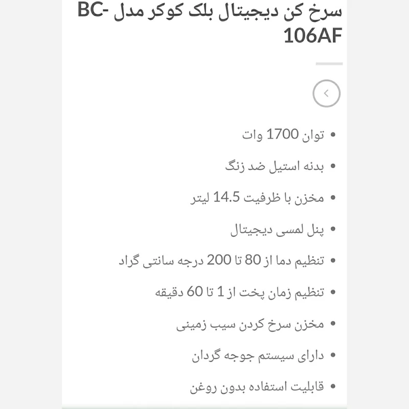 سرخ کن تمام دیجیتال بلک کوکرمدلBC-106AF