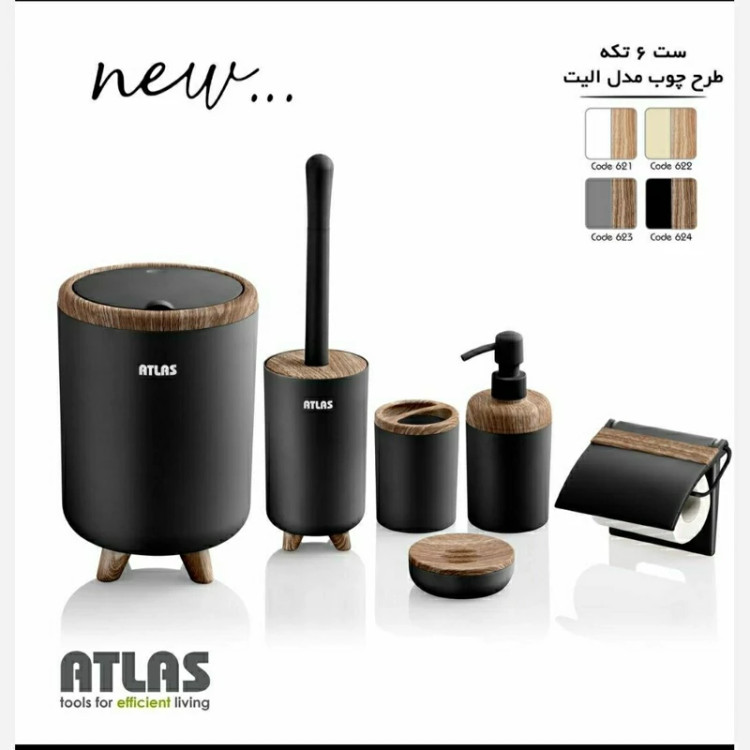 ست بهداشتی اطلس مدل الیت یک انتخاب لوکس و کاربردی برای سرویس بهداشتی شماست. این ست 6 پارچه شامل سطل زباله، فرچه، جا مایع، جا صابون، جا مسواکی و جا دستمال بوده و با طراحی مدرن و کیفیت بالا عرضه میشود. جنس بدنه از پلاستیک ABS مقاوم با آبکاری کروم یا طرحهای خاص (چوب، سفید-طلایی، ماربل) است که علاوه بر زیبایی، دوام بالایی در برابر رطوبت دارد.